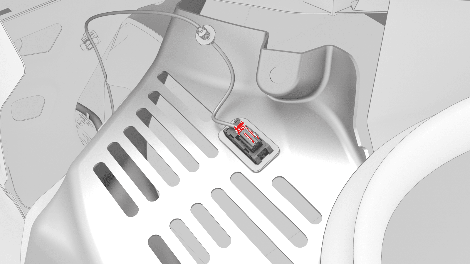 从行李箱 LH 和 RH 侧饰板上拆下地面照明灯连接器。