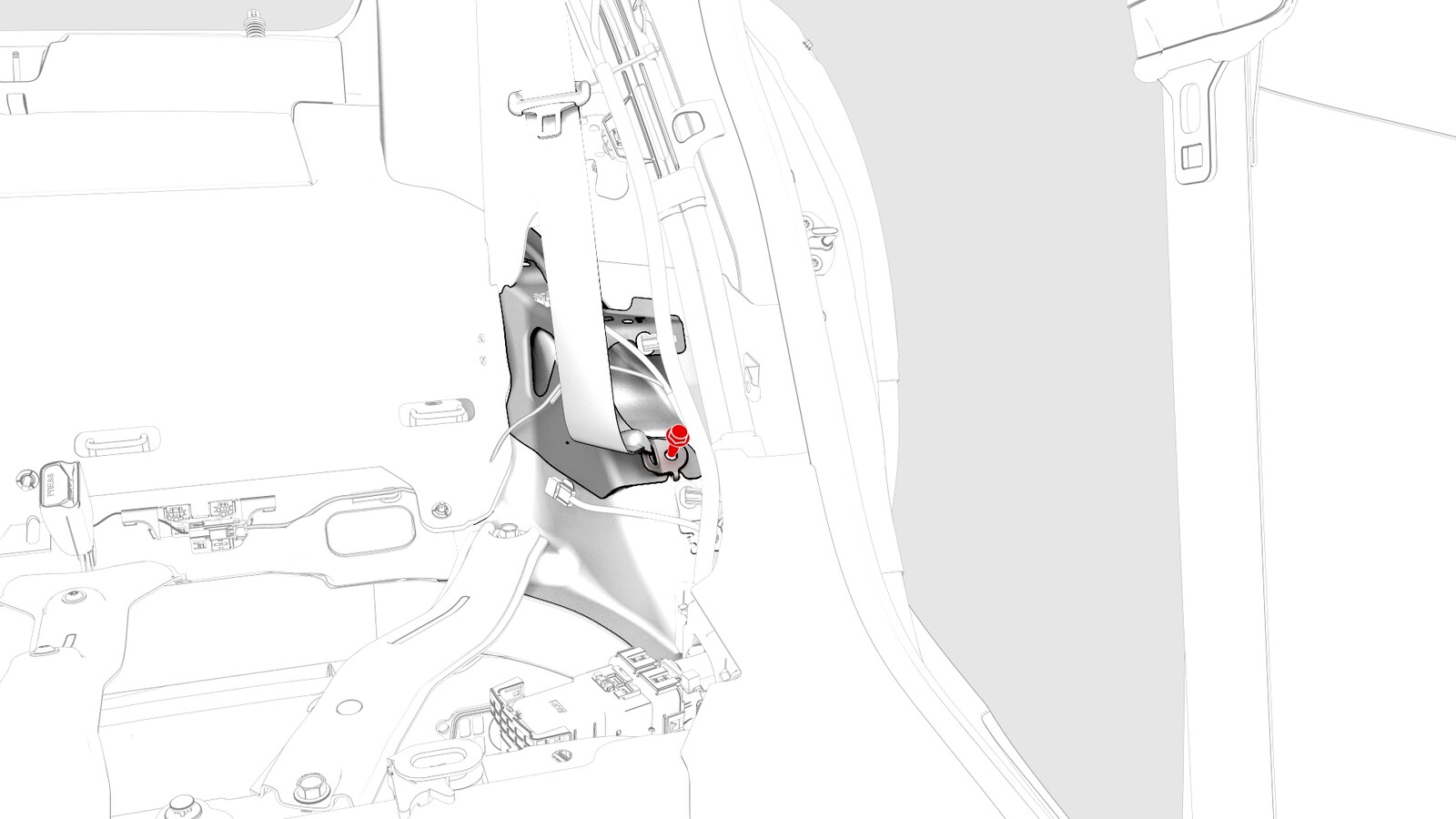 - 拆下 LH 边梁饰板。请参阅#GUID-F7357289-0632-4B38-A804-58B999076AE1。