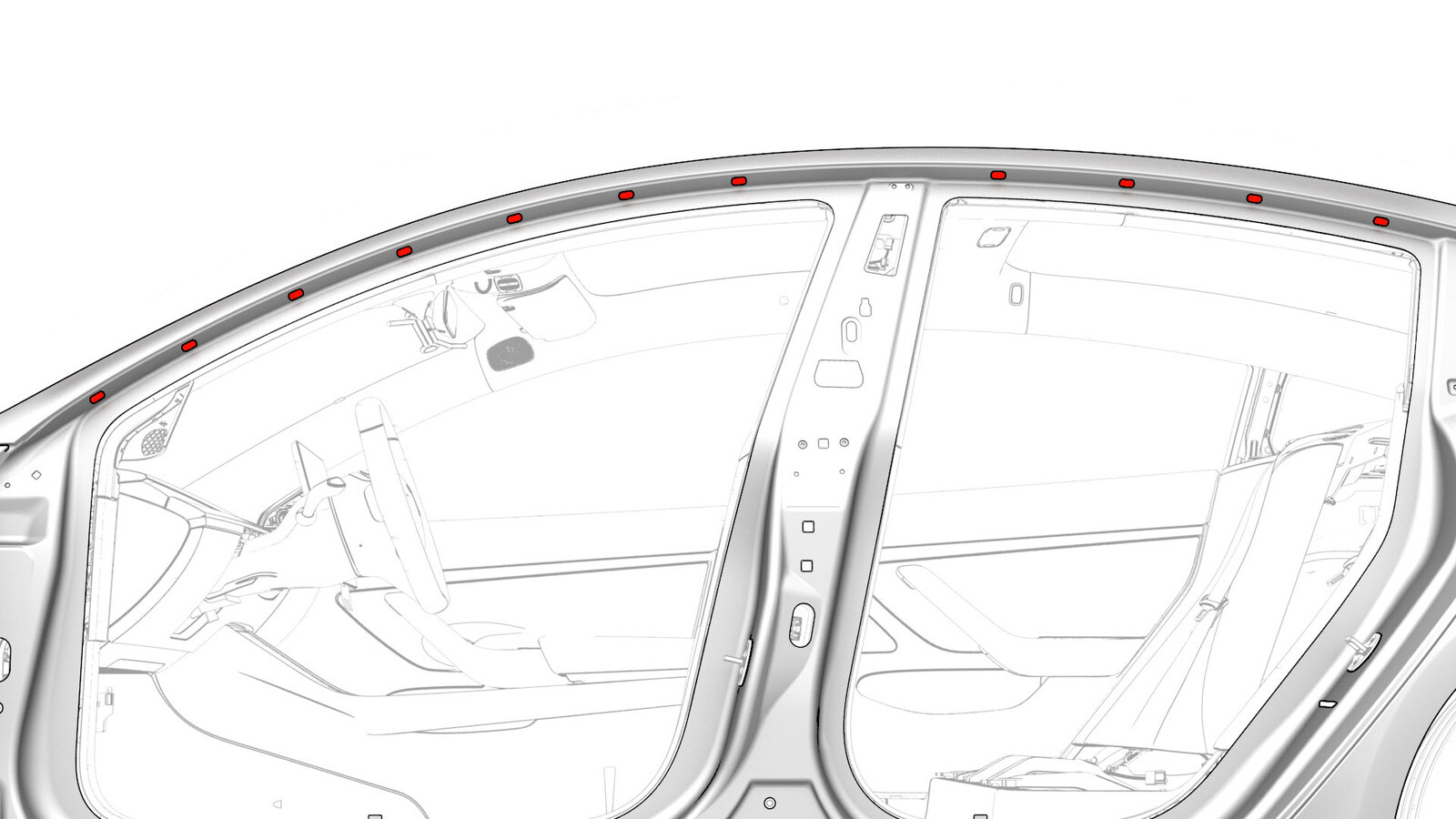 在即将安装左侧顶部亮条的车身位置上安装新索环 (x10)。