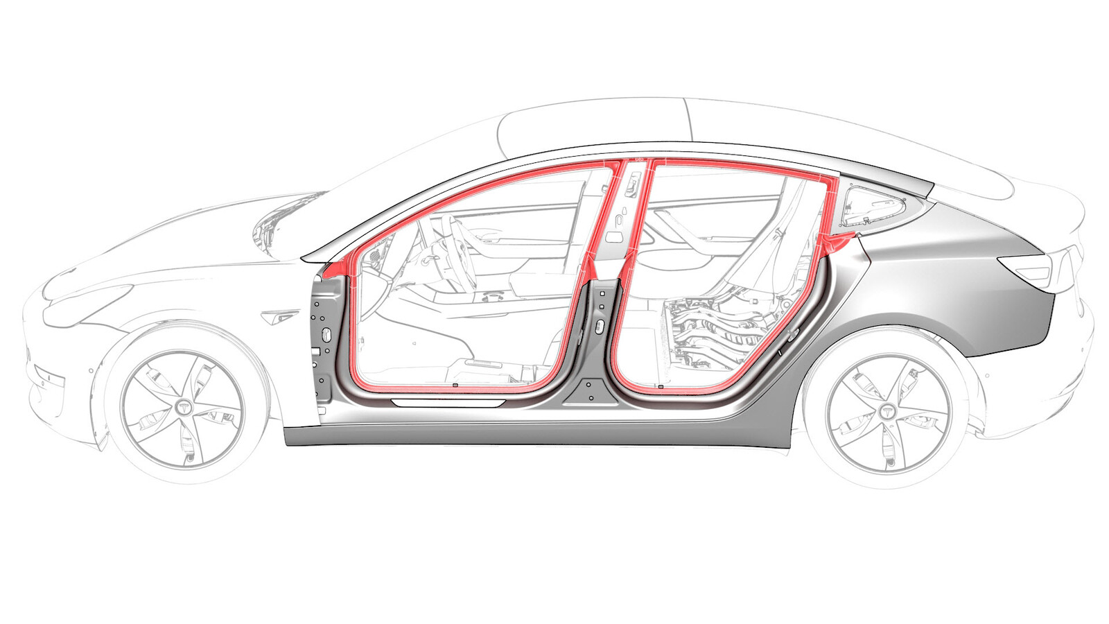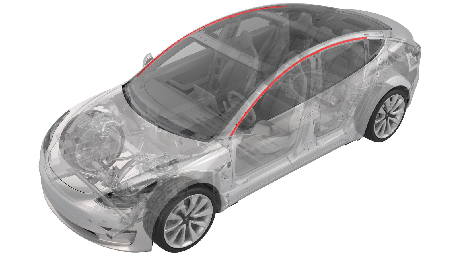 - 在助手的帮助下,小心地将左侧顶部亮条安装到后角窗玻璃内。