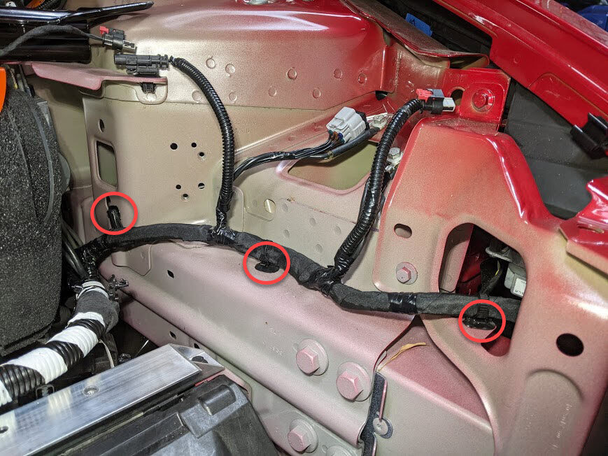 Install the clips (x3) that attach the front harness to the LH frame rail.