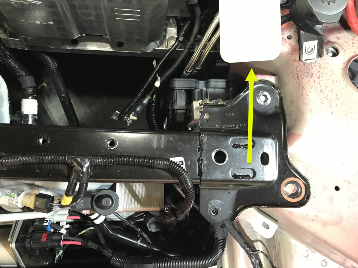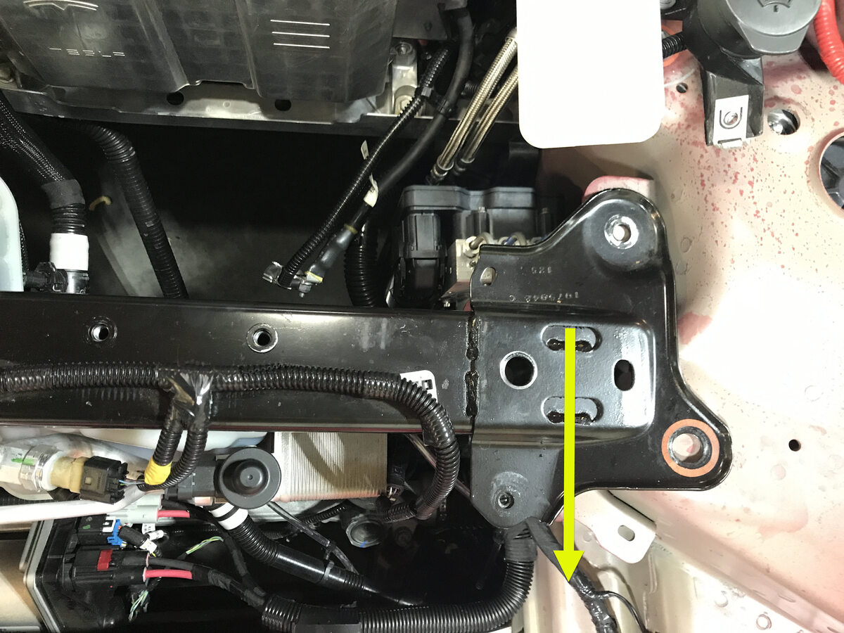 Tighten the outer bolt that attaches the shock tower brace to the RH shock tower.