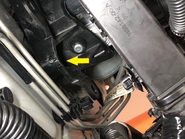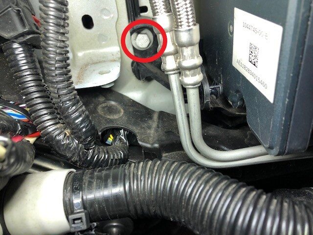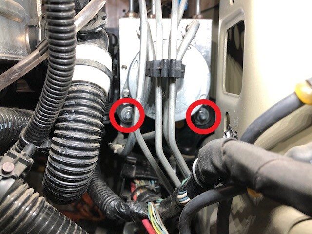 Remove the upper bolt that attaches the hydraulic control unit bracket to the frame rail.