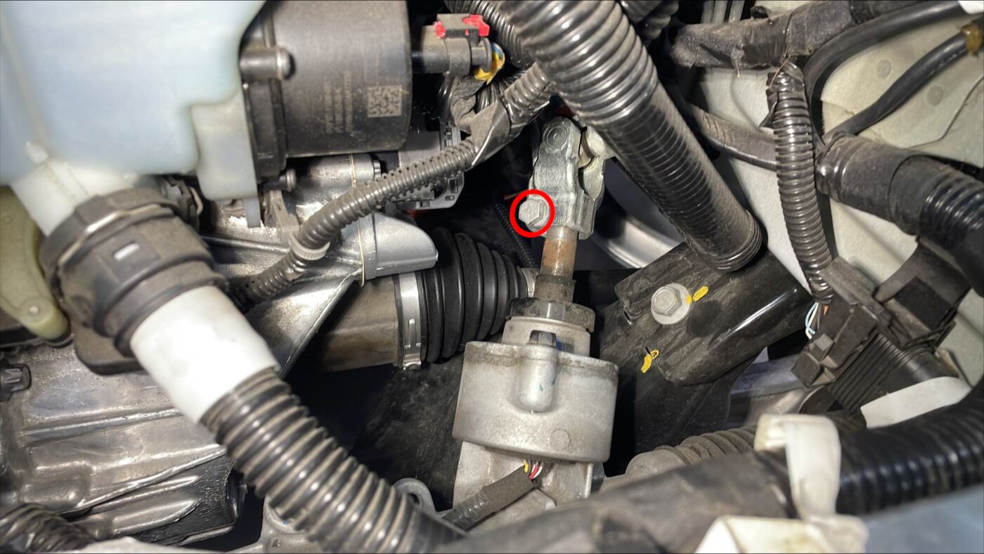 Install bolt that attaches the intermediate shaft assembly to the steering gear assembly.