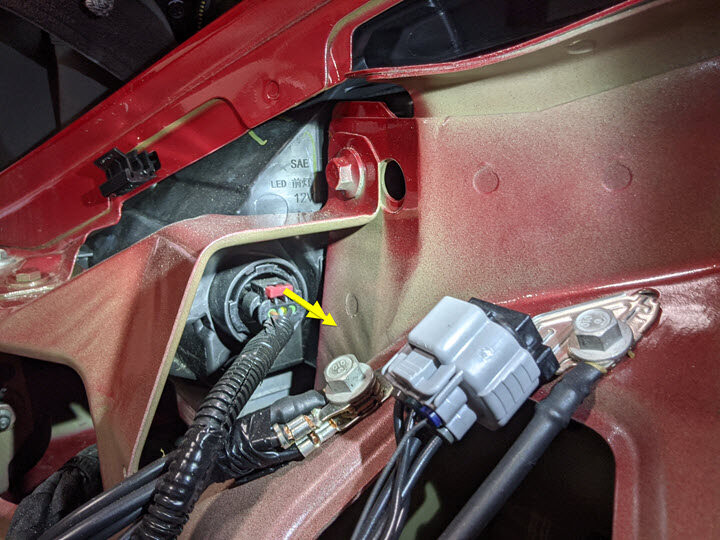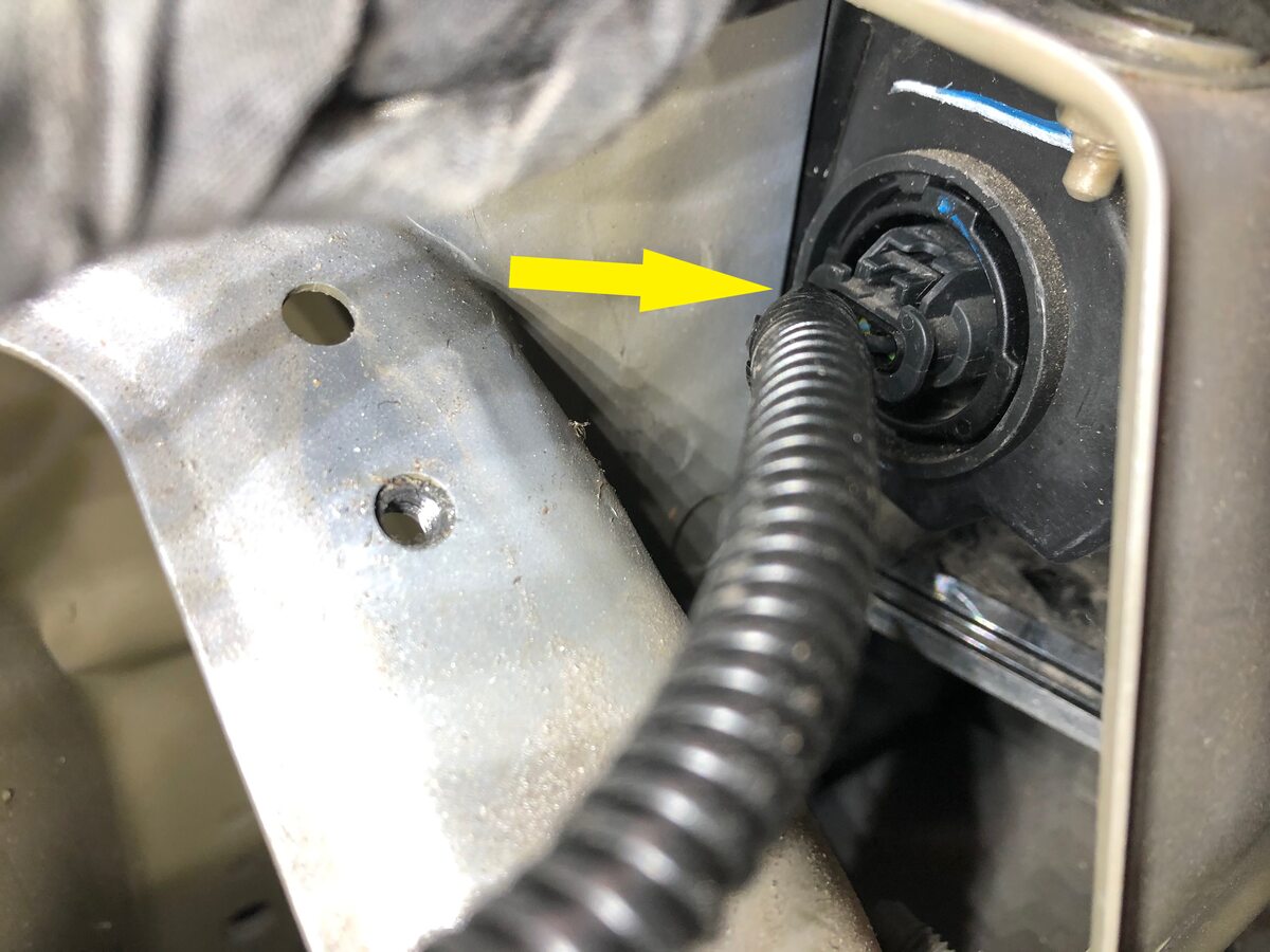 注Release lock from opposite side of bracket, then release the connector towards the front of the vehicle.