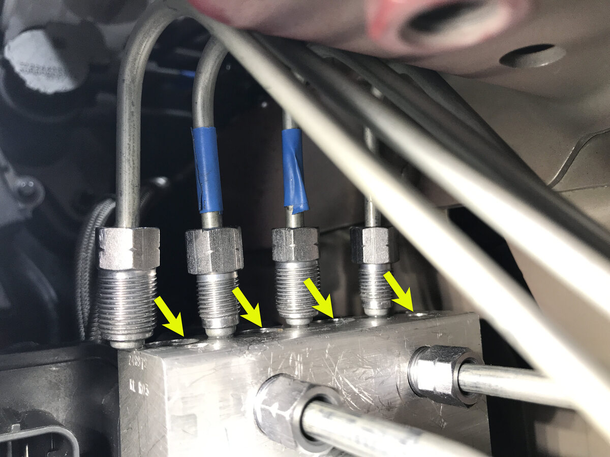 Remove the tape that covers the hydraulic control unit brake line orifices.