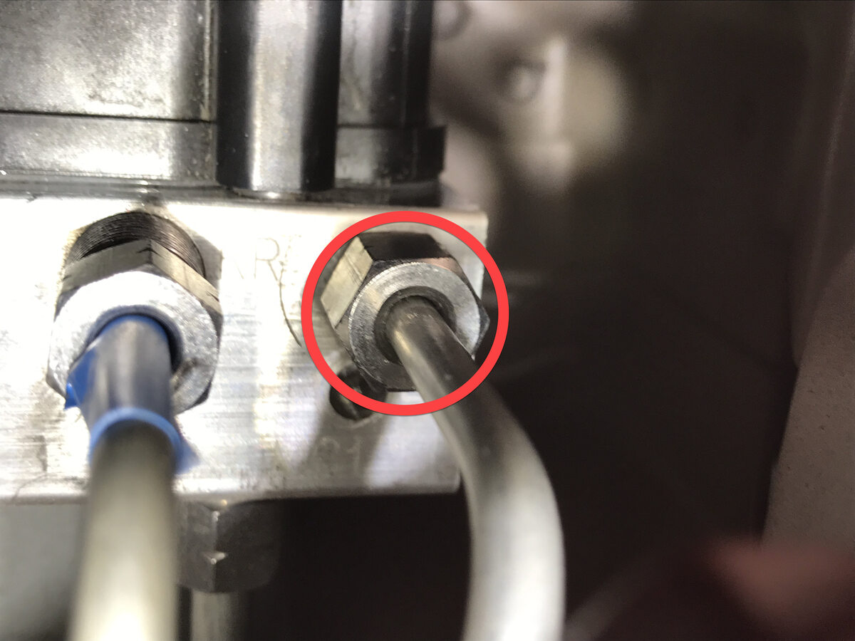 Install the nut that attaches the master cylinder primary brake line to the hydraulic control unit.