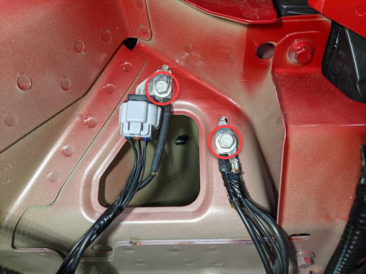 Install the bolts (x2) that attach grounds G011 and G013 to LH frame rail.