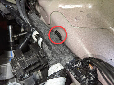Install the clip that attaches the front harness bracket to the LH frame rail.