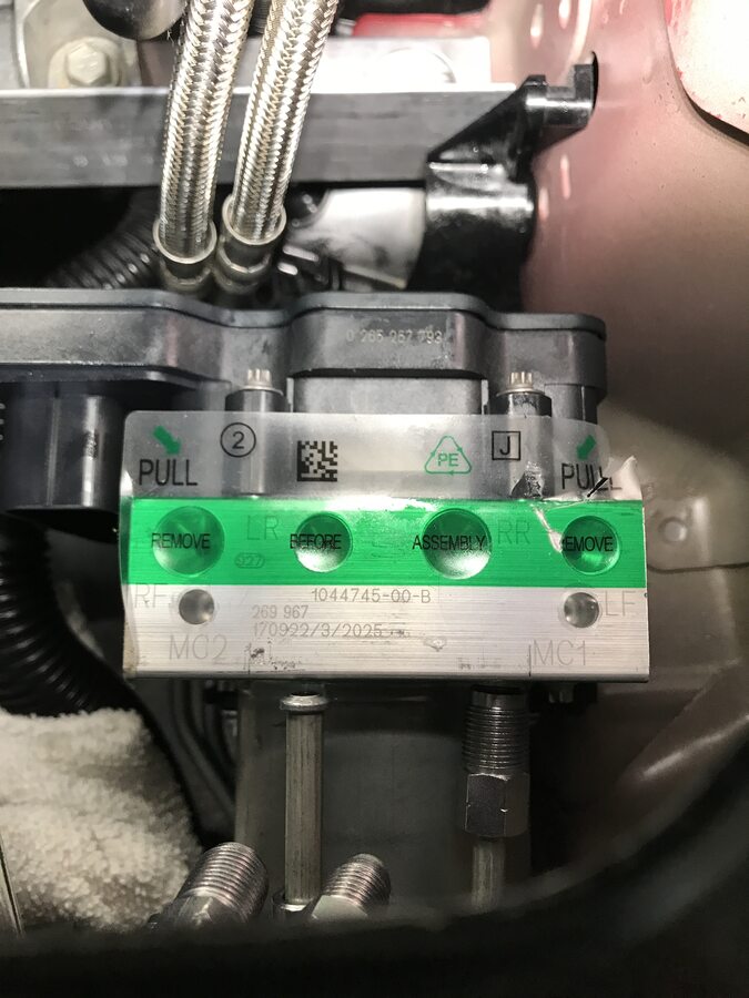 Move the master cylinder brake lines out of the way to allow the ABS ECU to be removed.