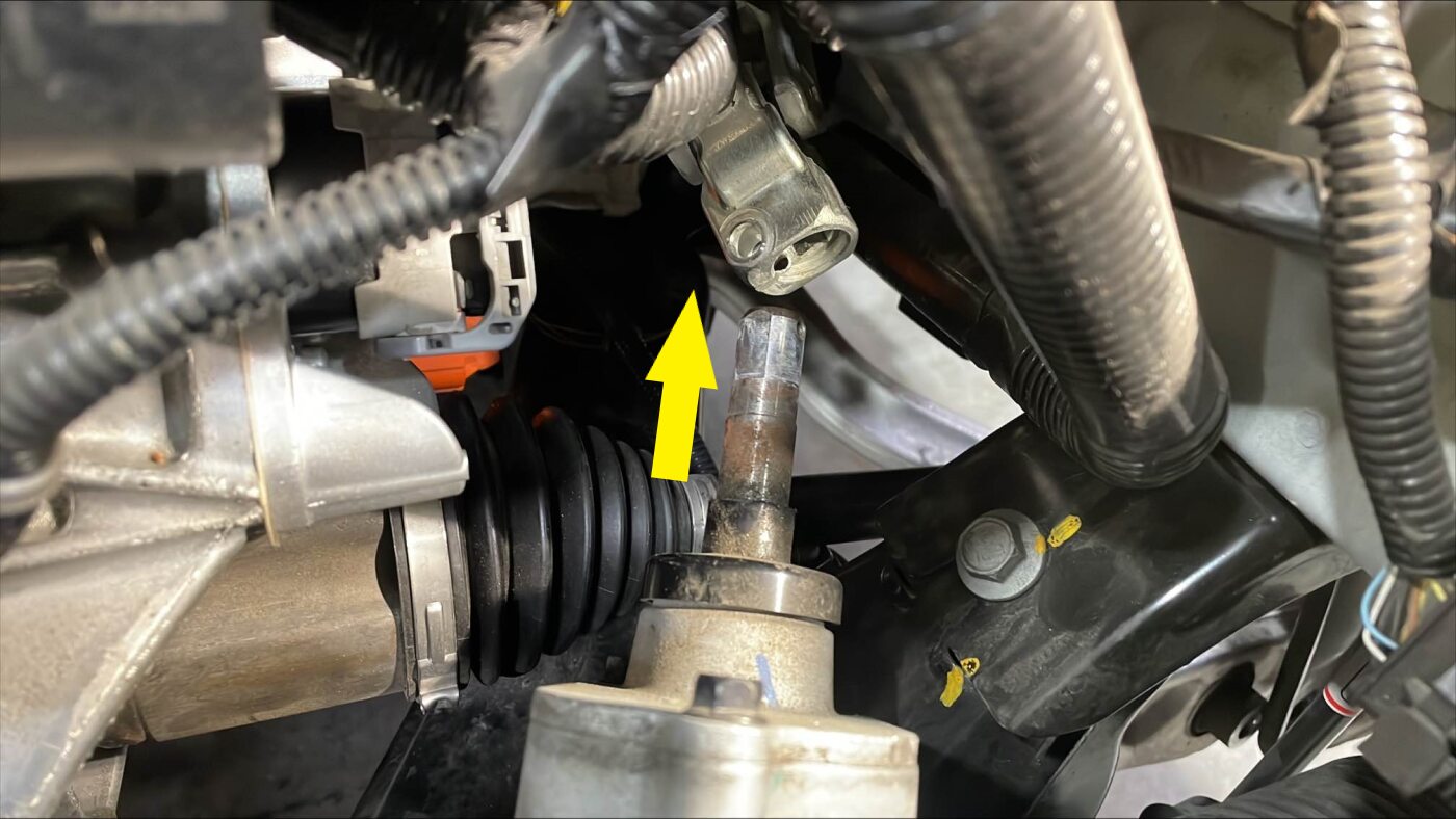 Slide the intermediate shaft assembly downward to install it to the steering gear assembly.