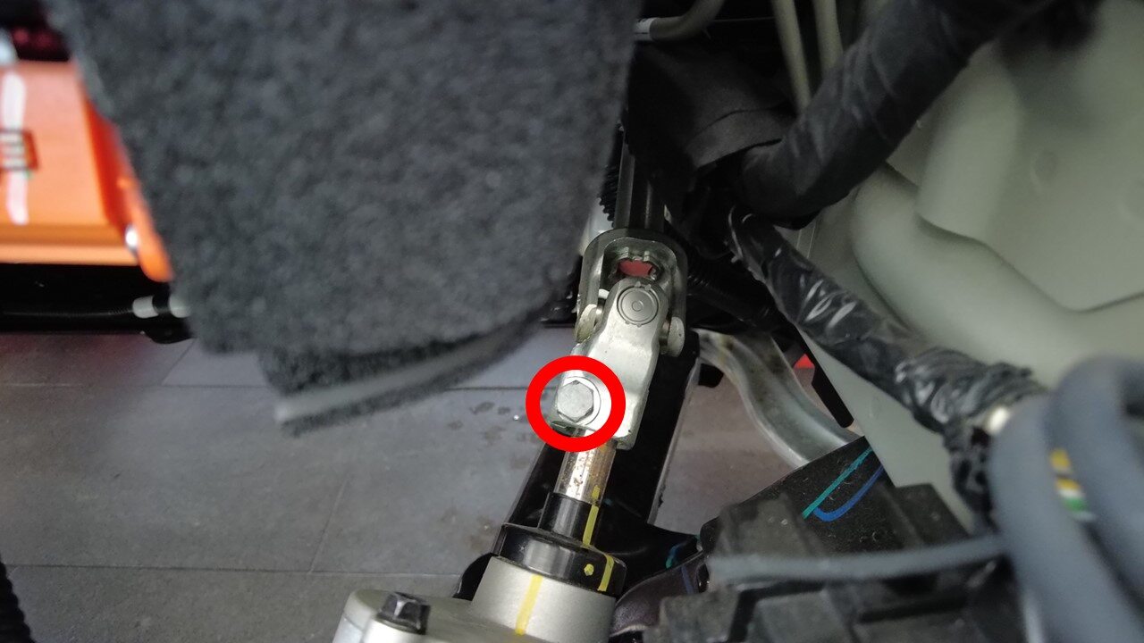 Remove the bolt that attaches the steering gear assembly to the intermediate shaft assembly.