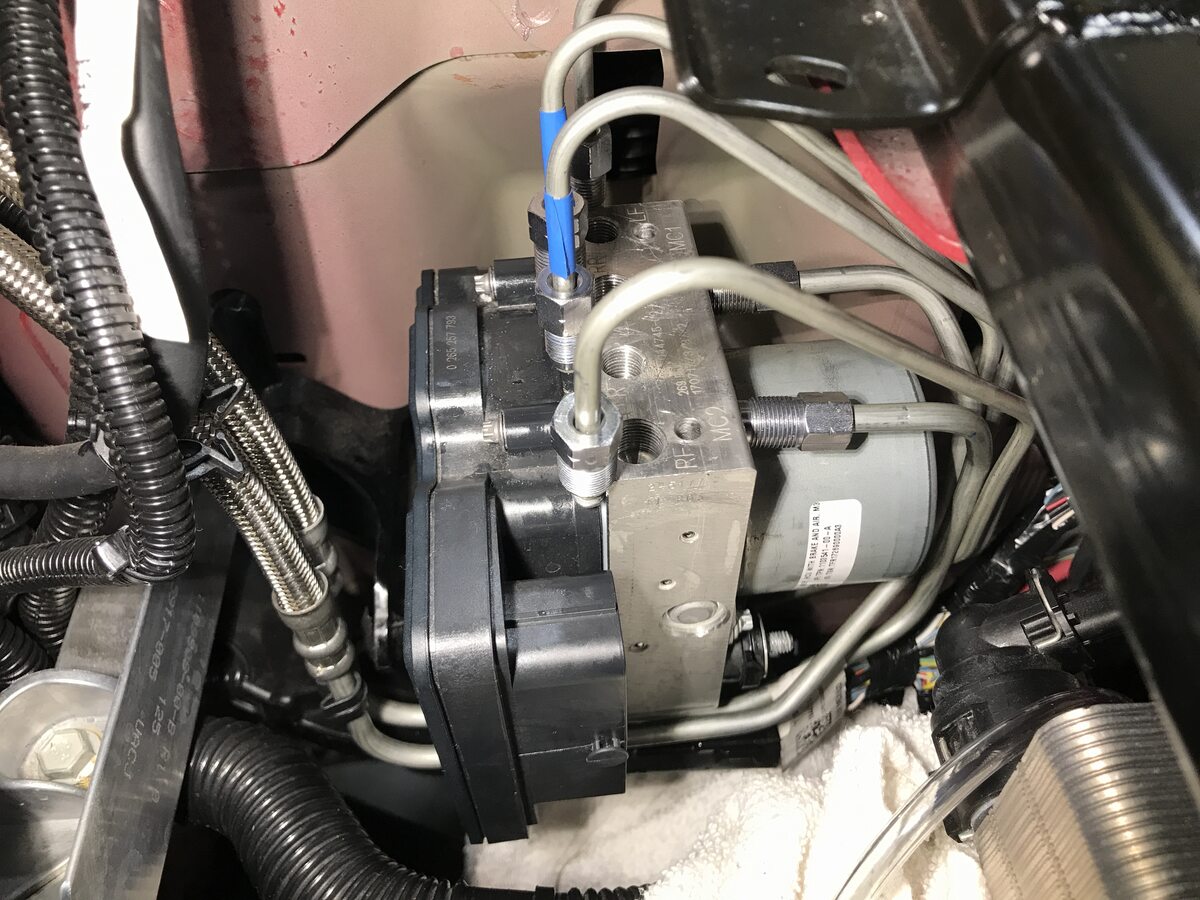 Position the master cylinder brake lines to the clip at the rear of the hydraulic control unit bracket.