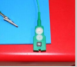 将静电放电 (ESD) 垫平放在工作台上,使按钮连接器距离接地点(插座和车辆底盘等)尽可能近