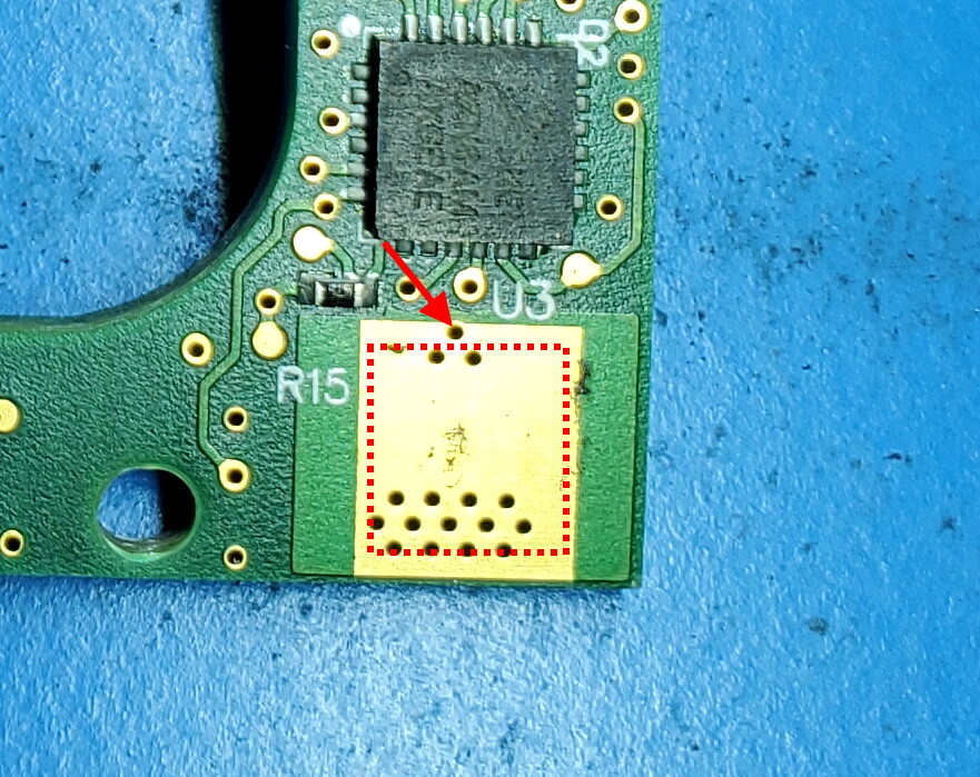 注确保石墨烯块完全安装在金方块内,并且最靠近芯片的孔未被遮盖。TIp推荐使用以下工具
