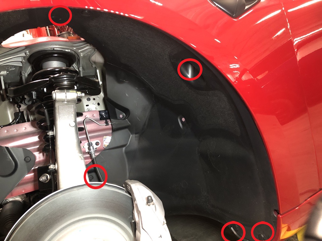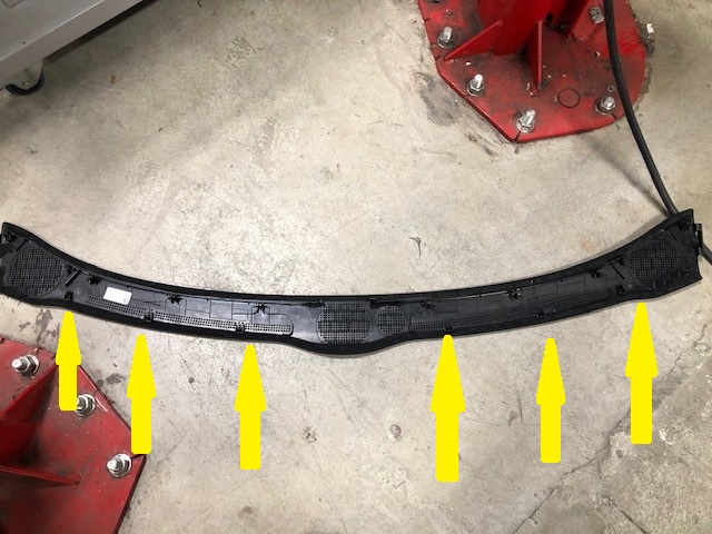 注6 个夹子,1 个螺栓,10 毫米,5 Nm;新款车可能配备 2 个将内衬下部固定到车身的推拉式夹