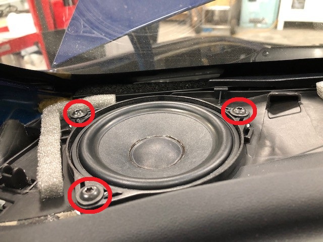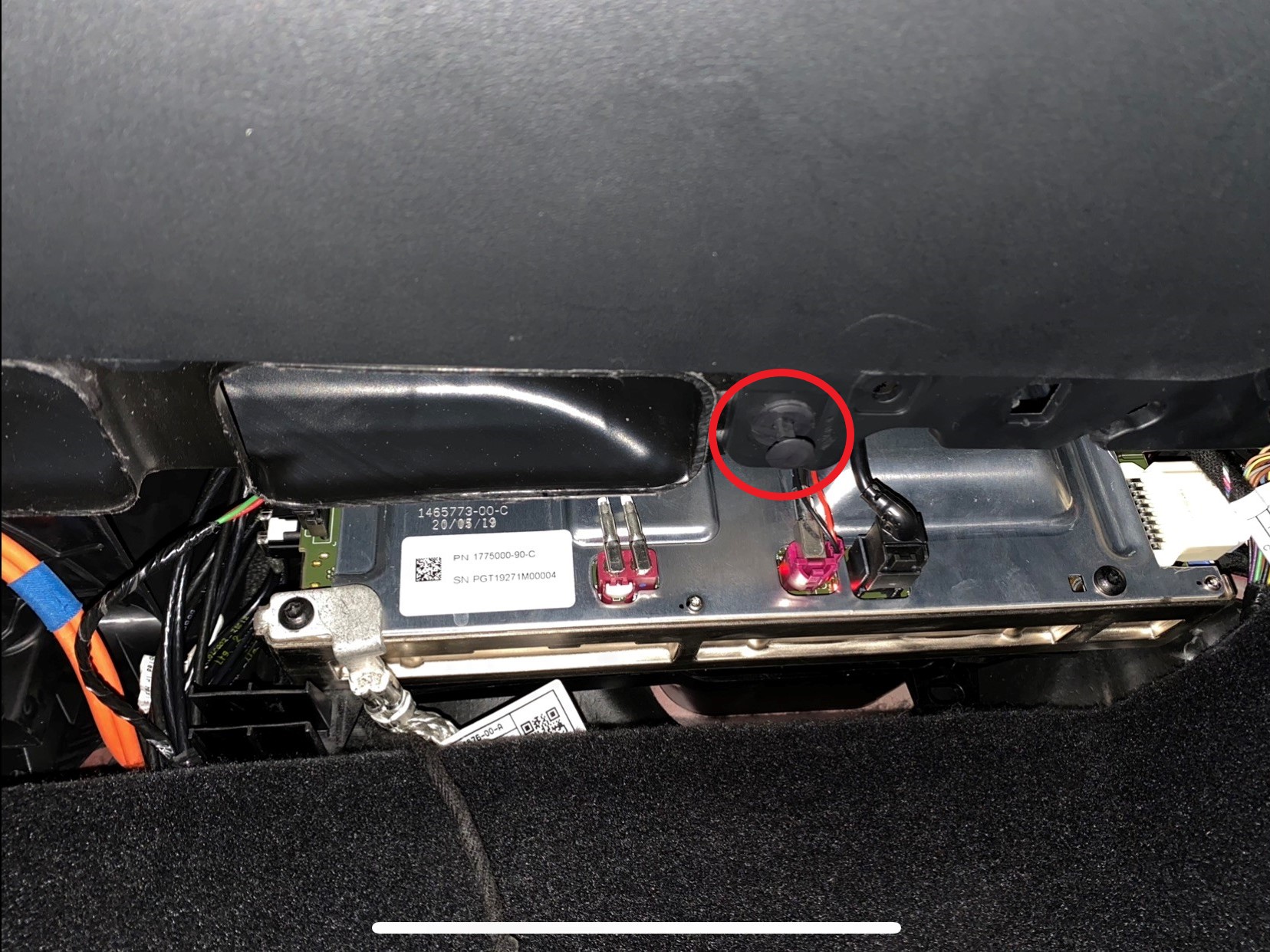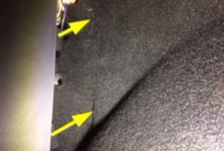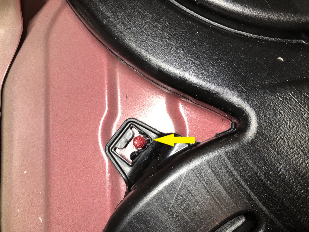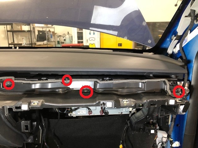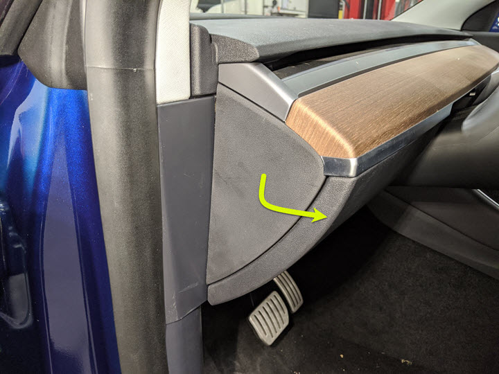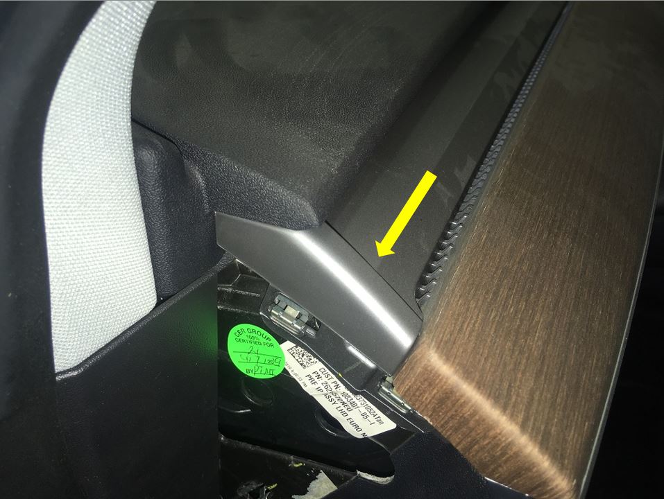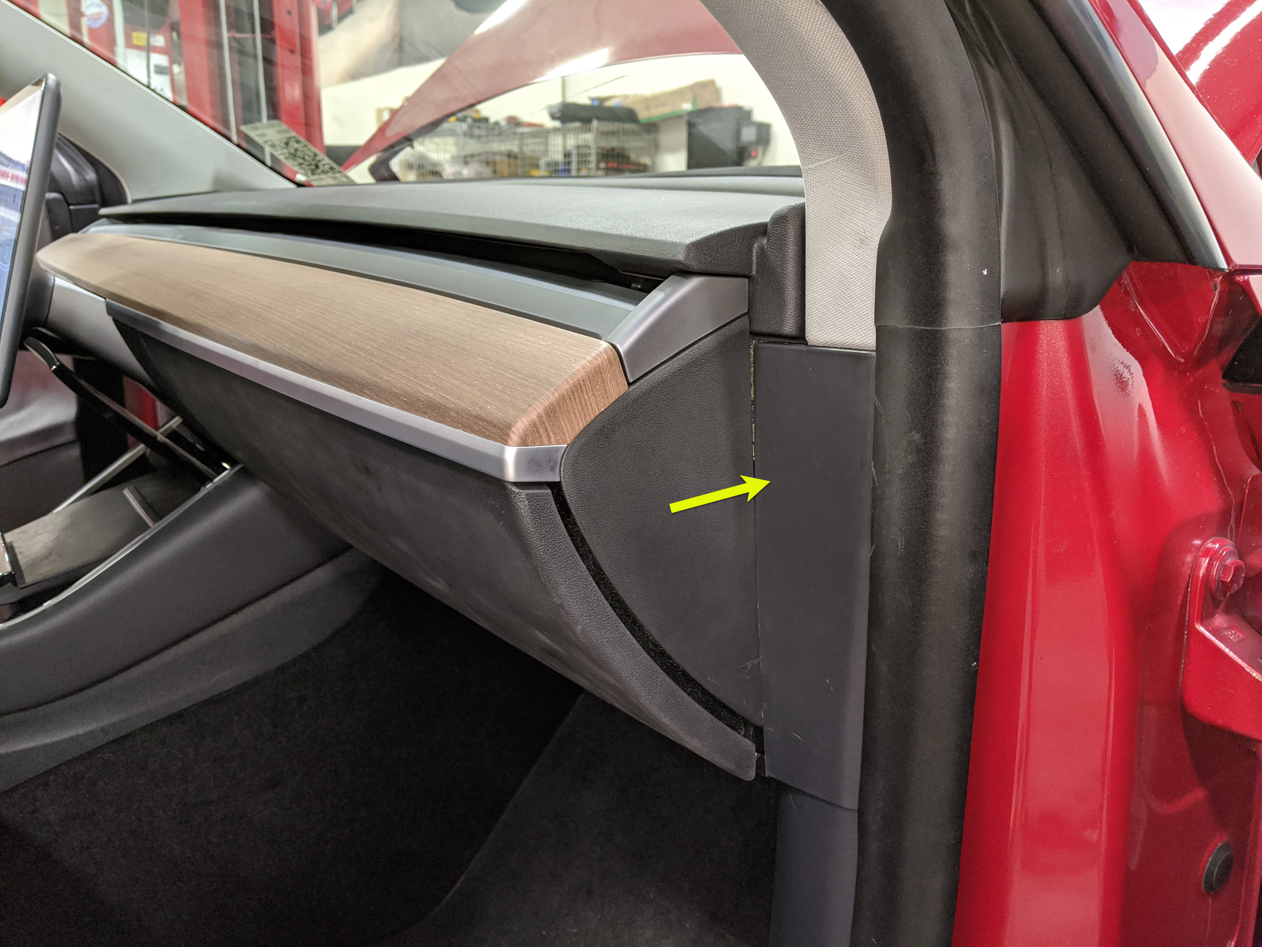 注不需要取下整块饰板。抬起饰板的 右侧就会有足够的空间拆下固定手套箱顶部的 3 个梅花螺钉;必要时更换固定夹