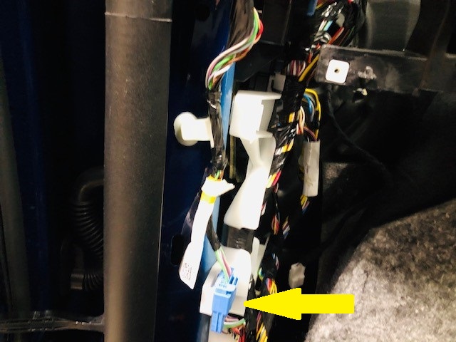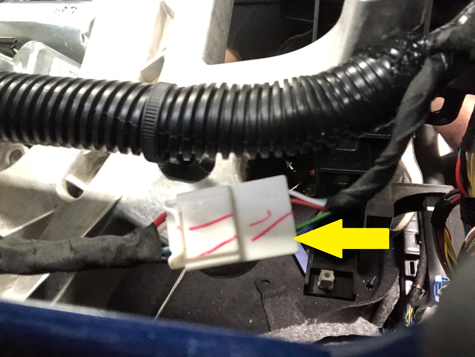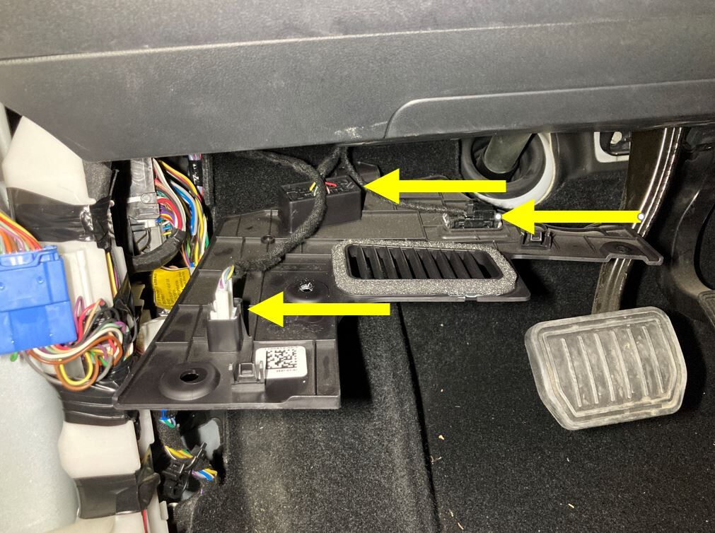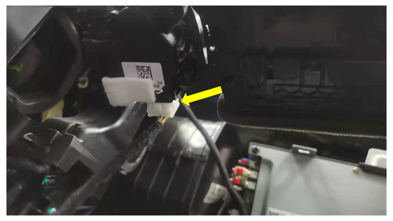 从左侧脚部空间盖板上拆下连接器,然后将其从车上拆下