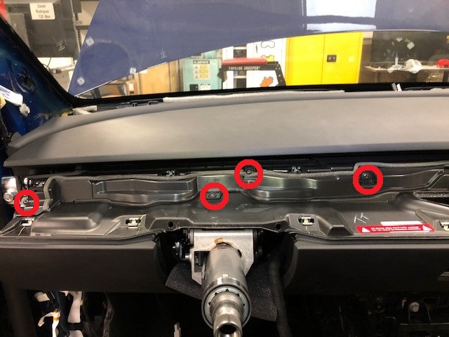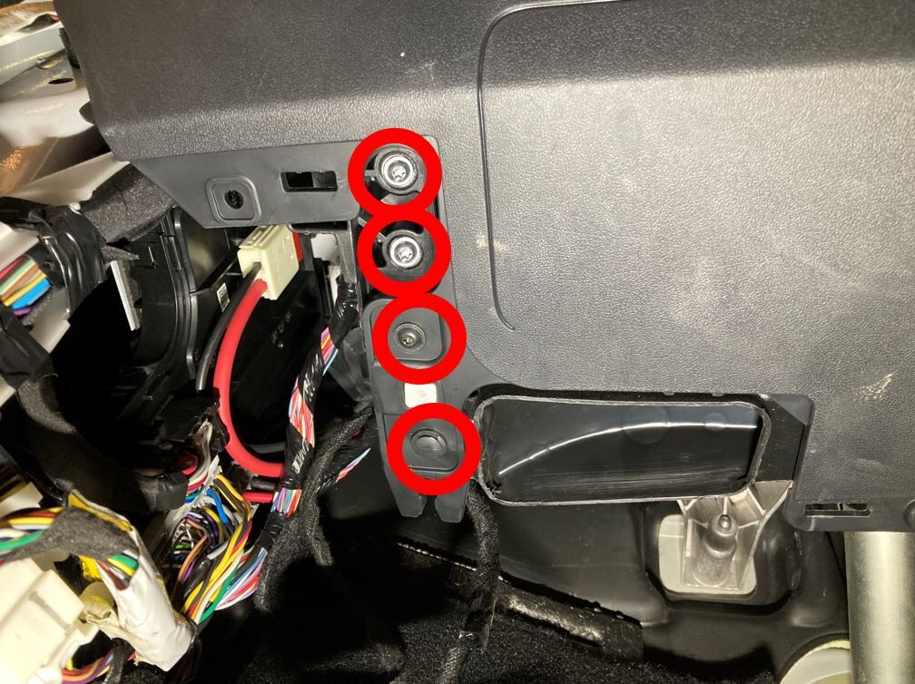 拆卸将手套箱总成固定到仪表板支架的螺钉
