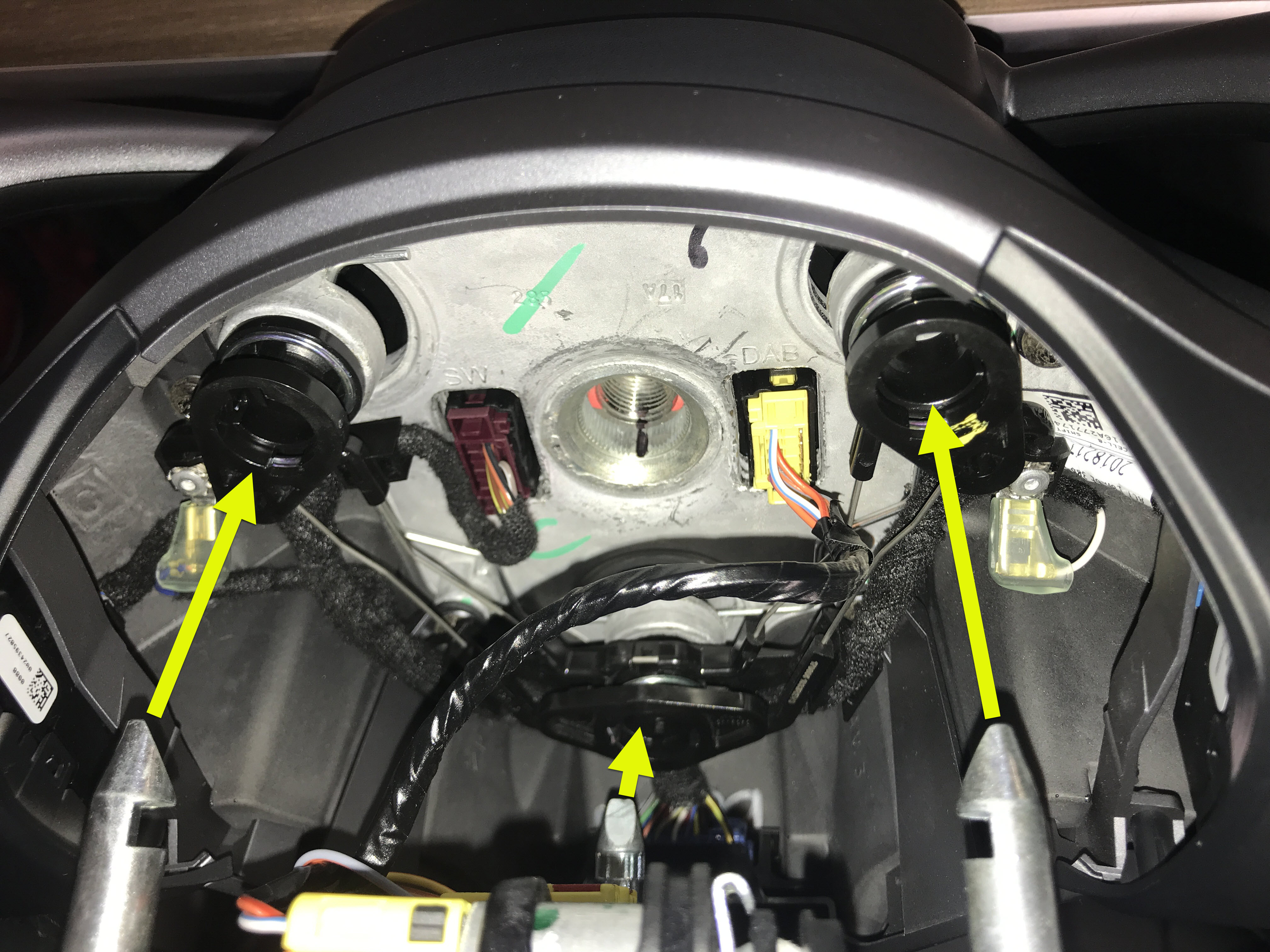 注3 个基线,1 个弹簧夹;在安装驾驶位气囊前,检查以确保下部喇叭支架完全固定到方向盘