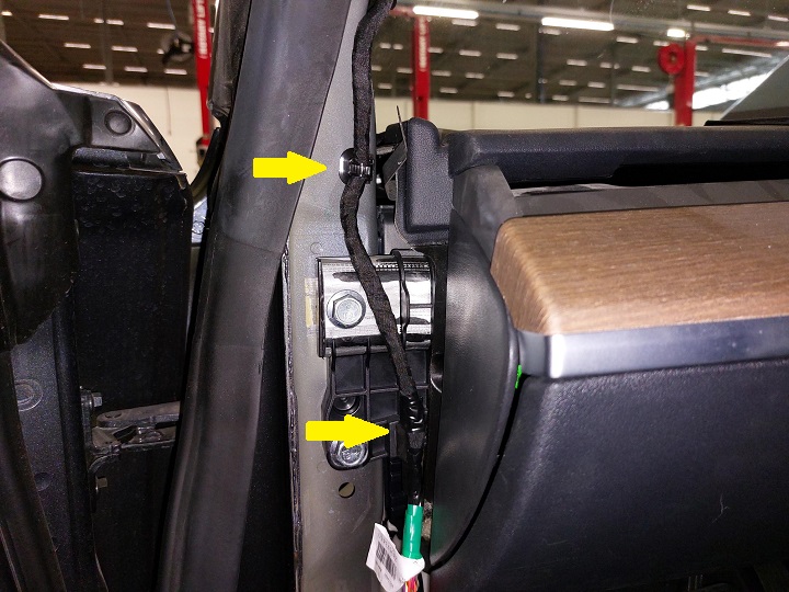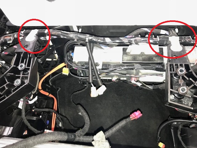 注1 个推拉式夹,2 个螺钉,T20,2 Nm,4 个耐落螺栓,T30,8 Nm;拆下后弃用;降下时需支撑膝部气囊;连接器/线束长度非常短;新款车配备 4 个耐落螺栓,E10