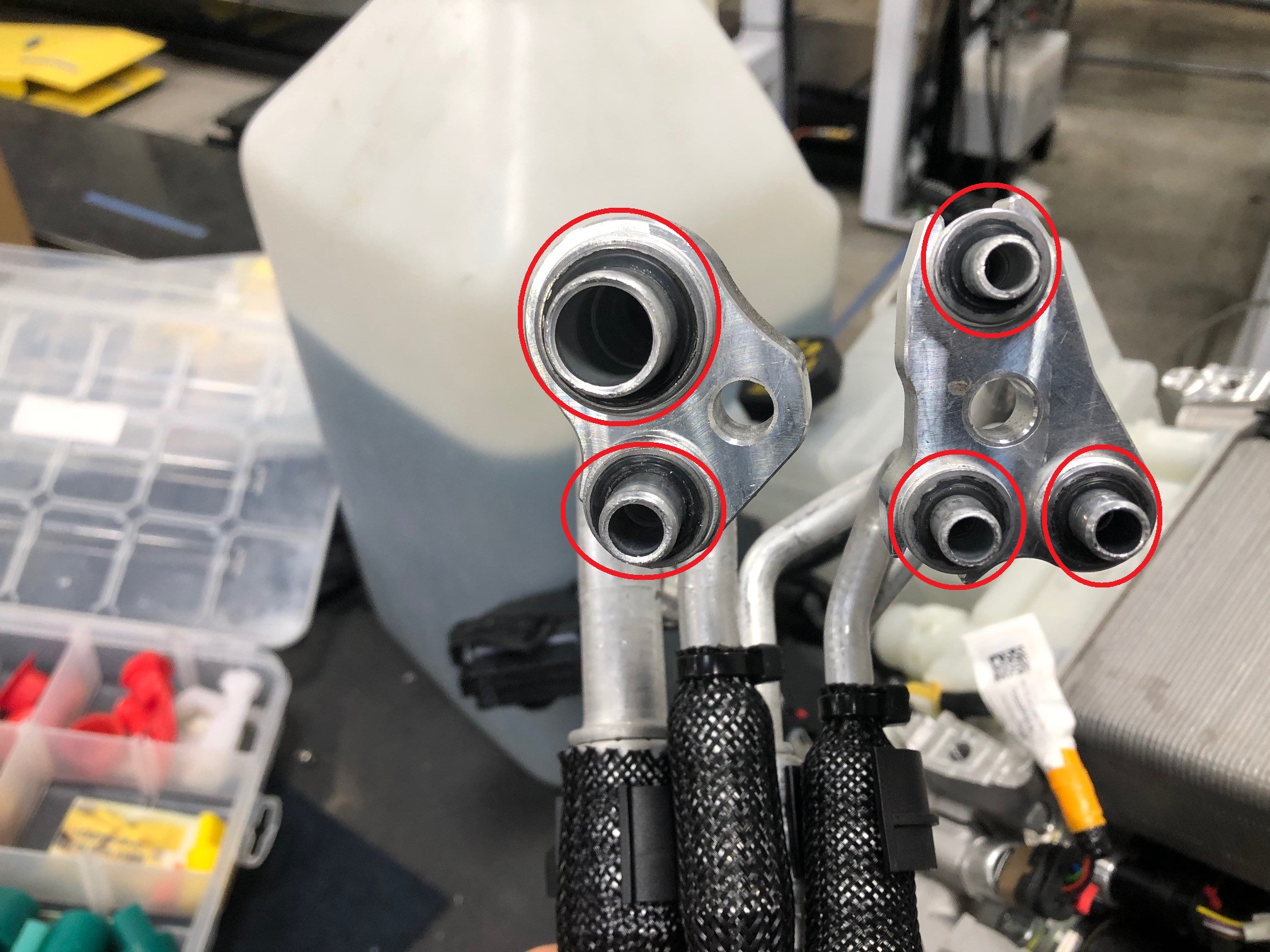 此程序要求执行空调制冷剂(回收和重新加注)程序。如果尚未自动添加到“服务工单”中,请将校正代码 18200102 作为一项单独的工项添加至“服务工单”中。