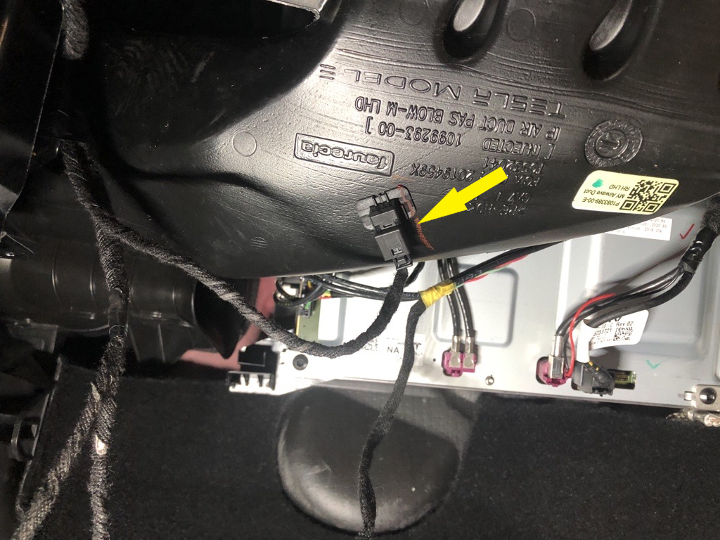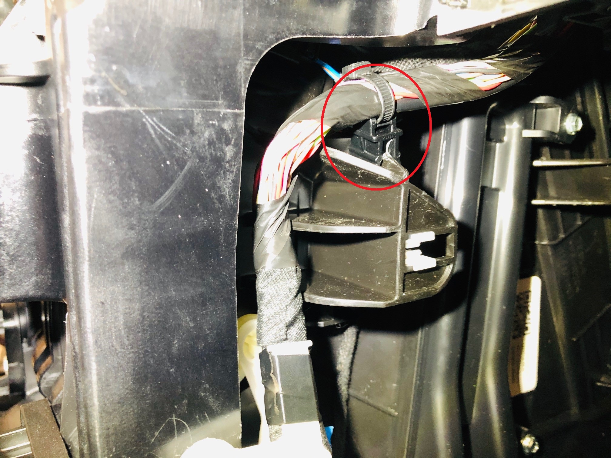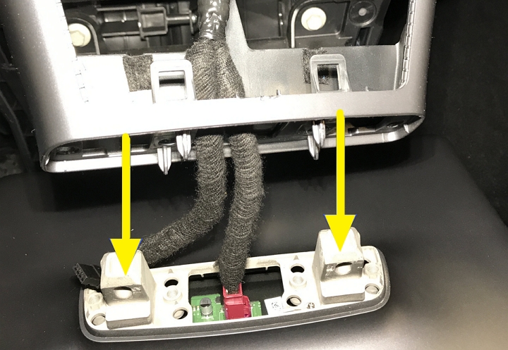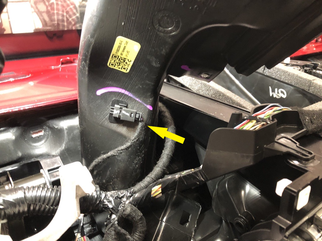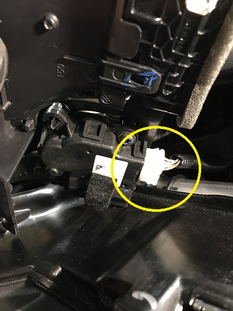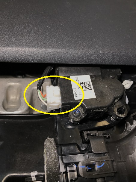 将左侧通风槽放置在仪表板中,然后连接线束连接器