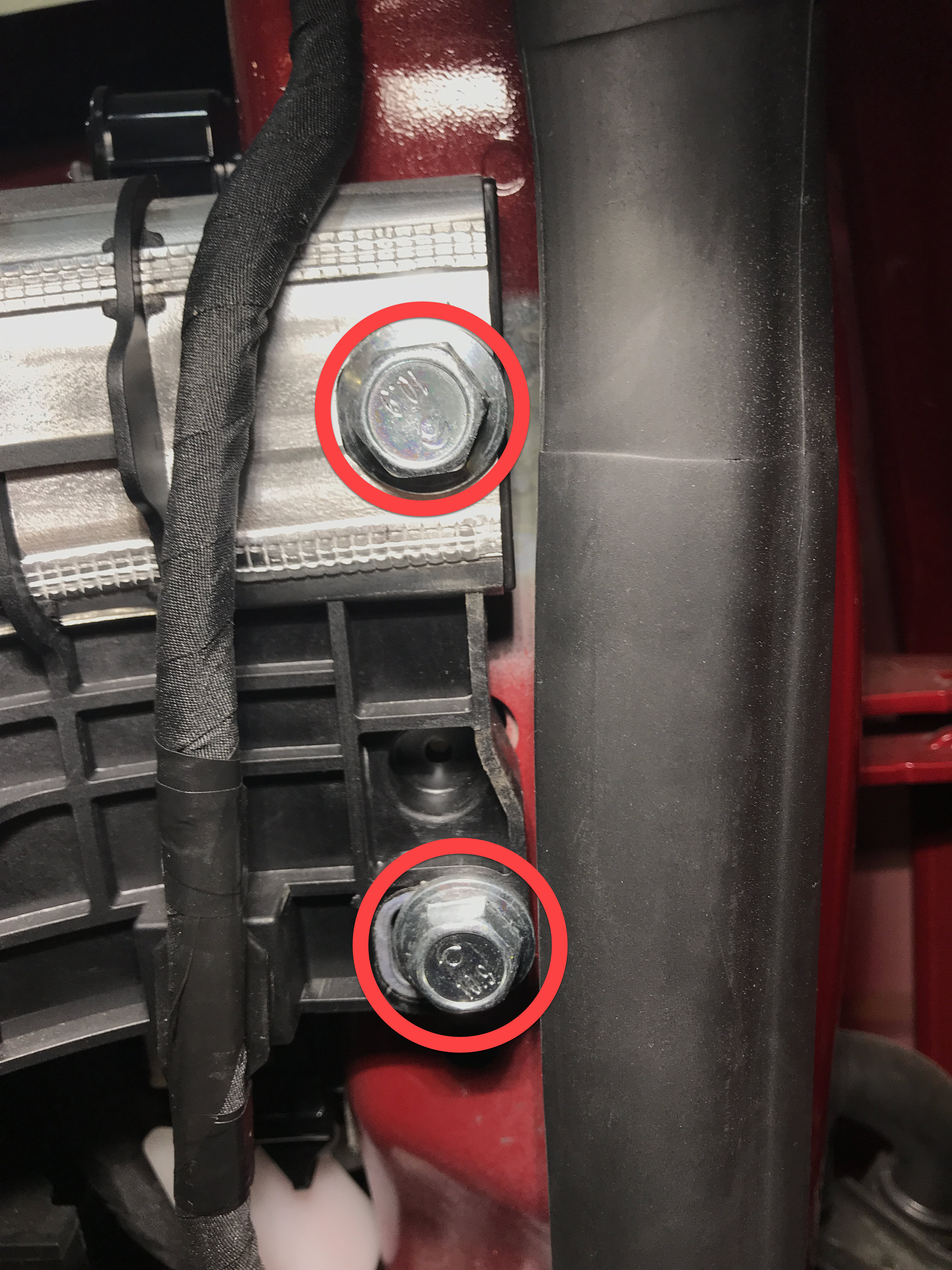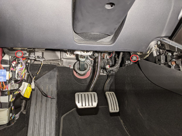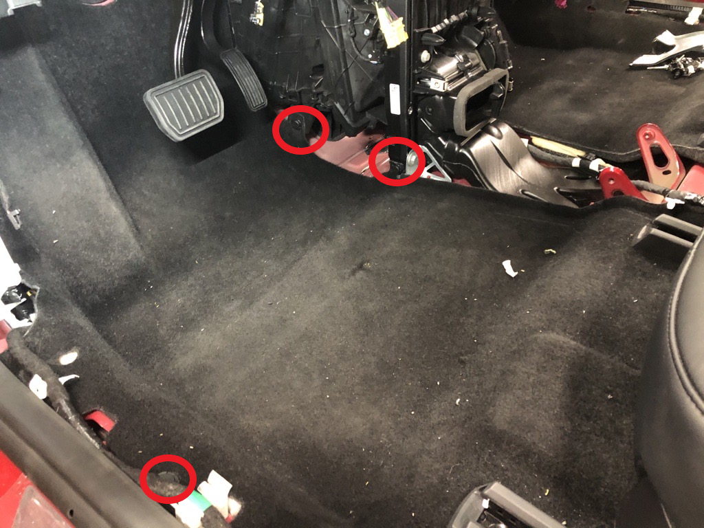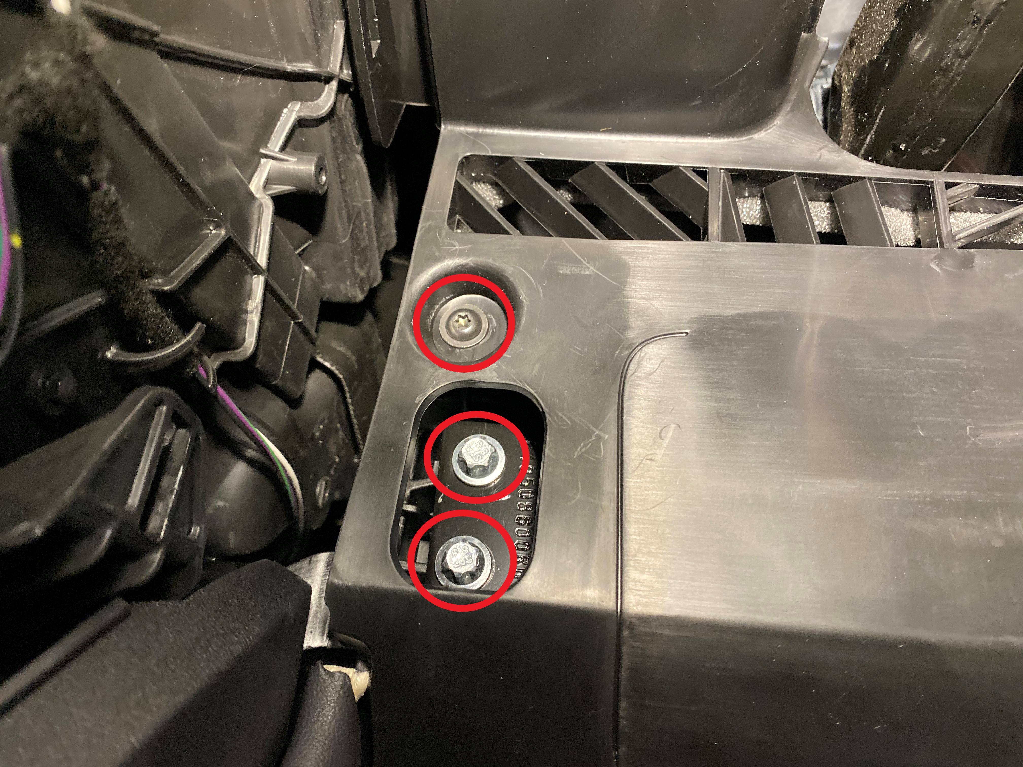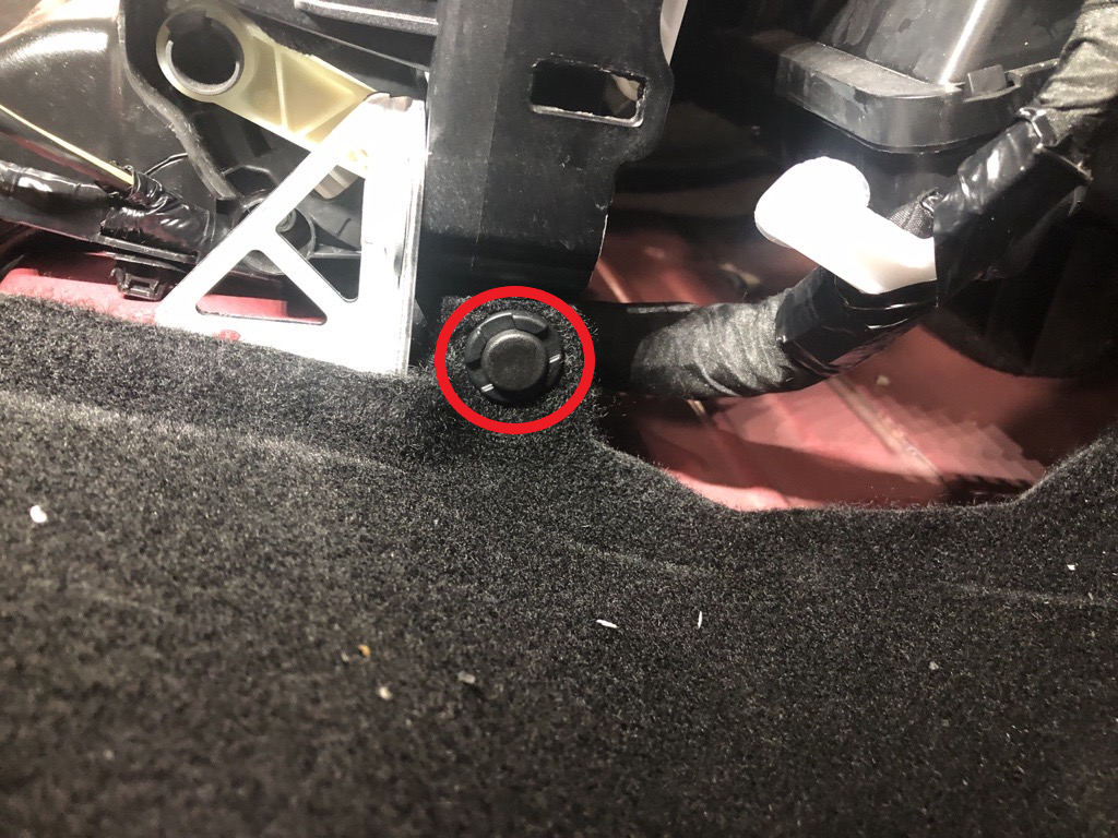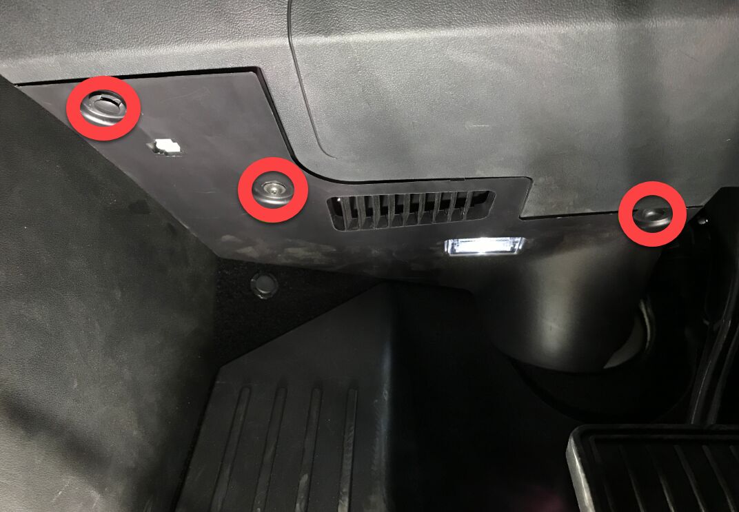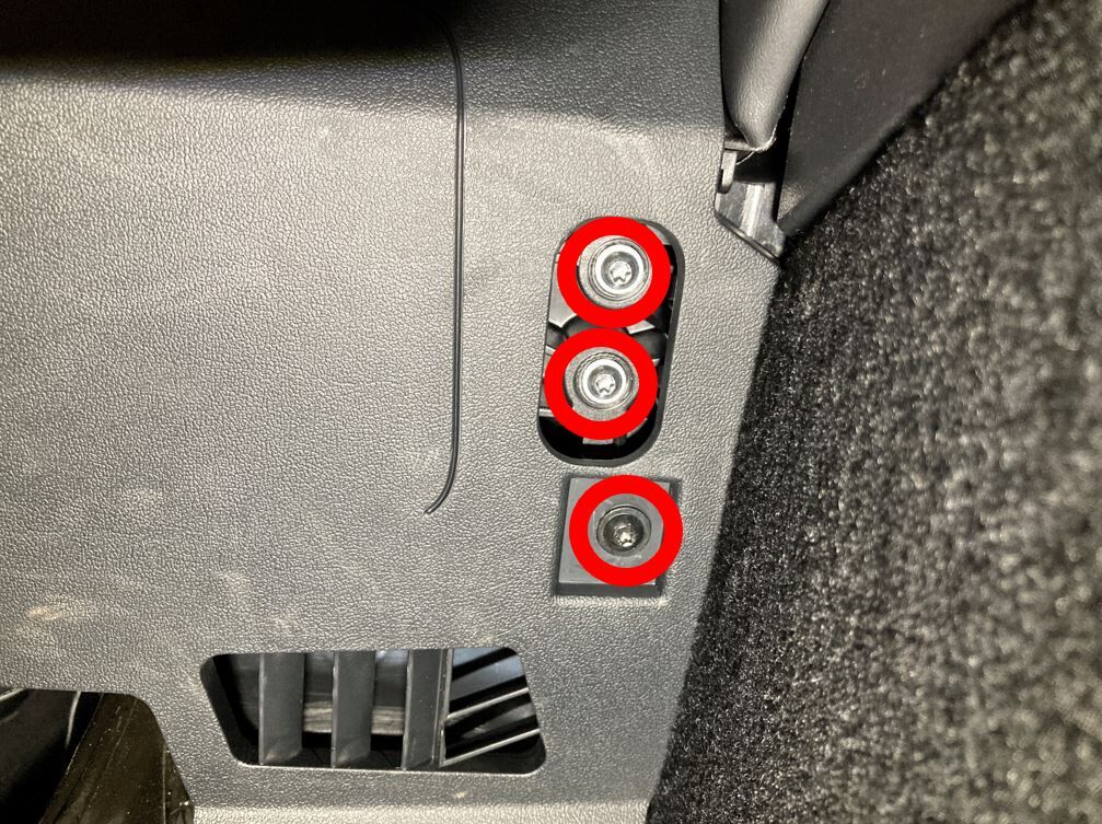 安装用于固定脚部空间盖板的左侧螺钉和夹子