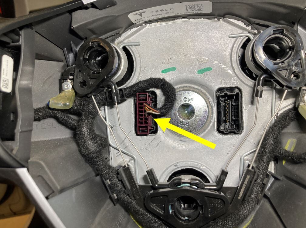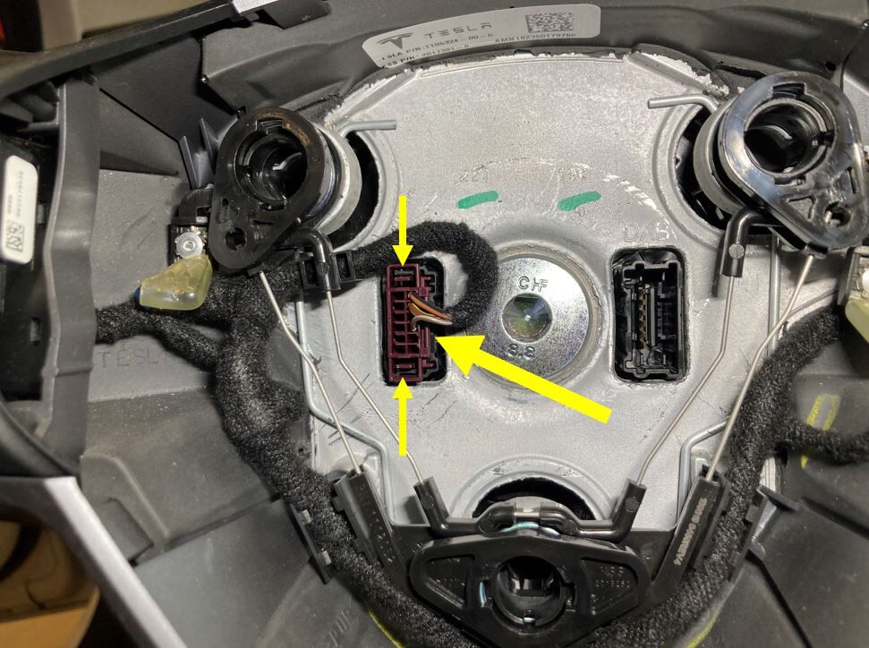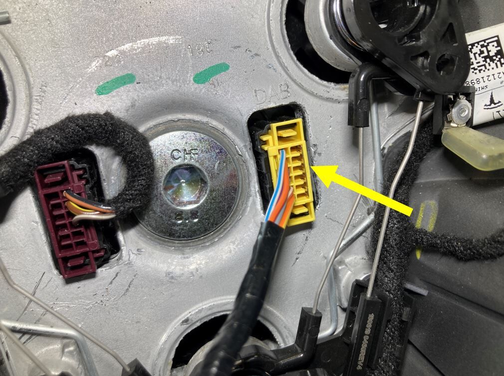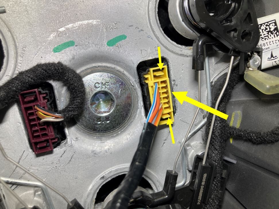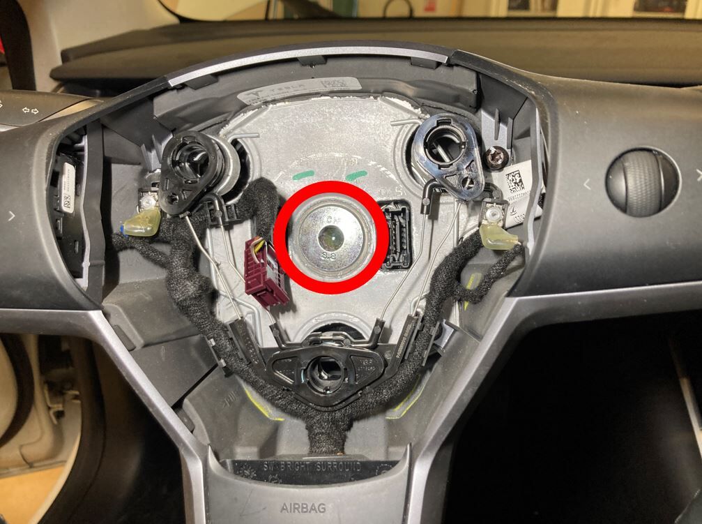 断开驾驶位气囊连接器,拆下驾驶位气囊总成
