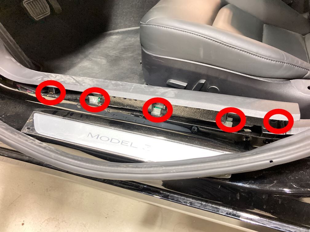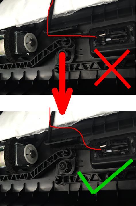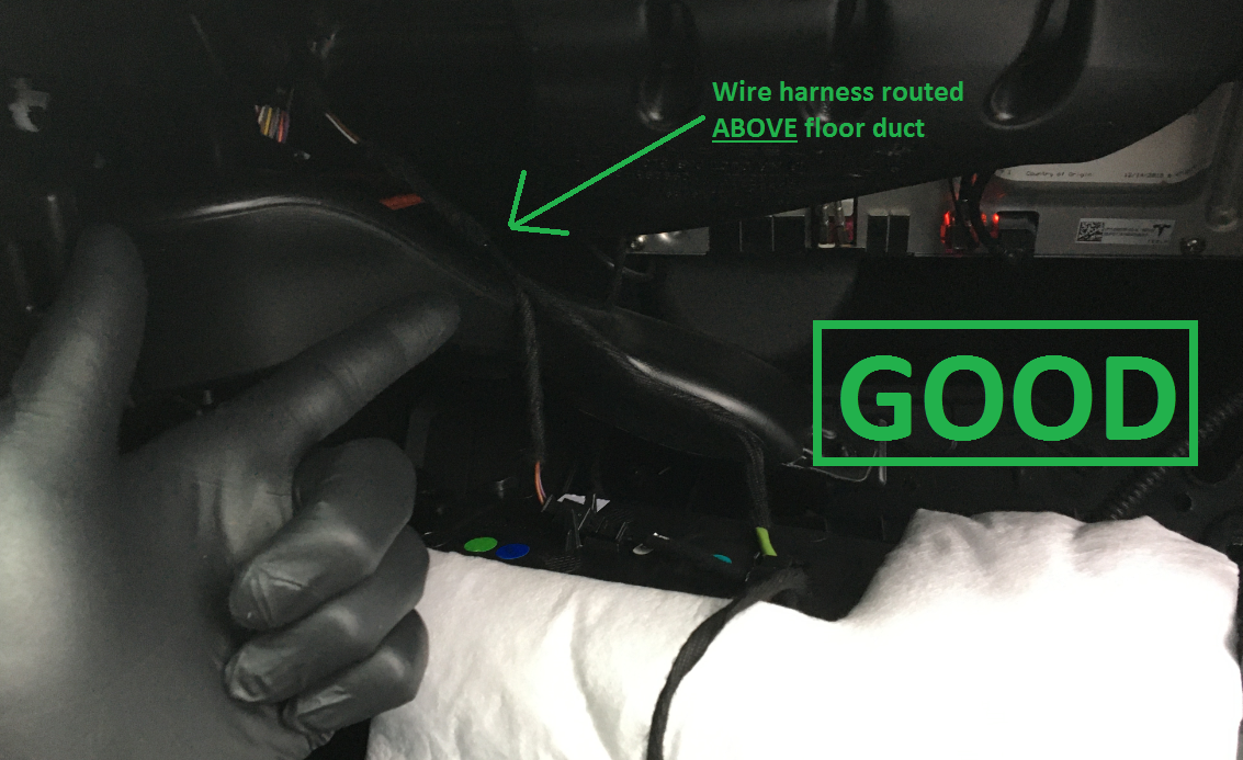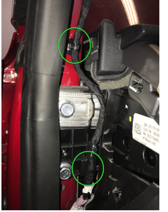 注3 个连接器;重新布置路面照明灯线束,防止阻碍棘爪的移动;连接前确保线束在副驾位脚部空间风管上方正确布线