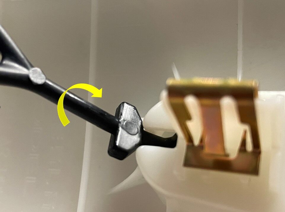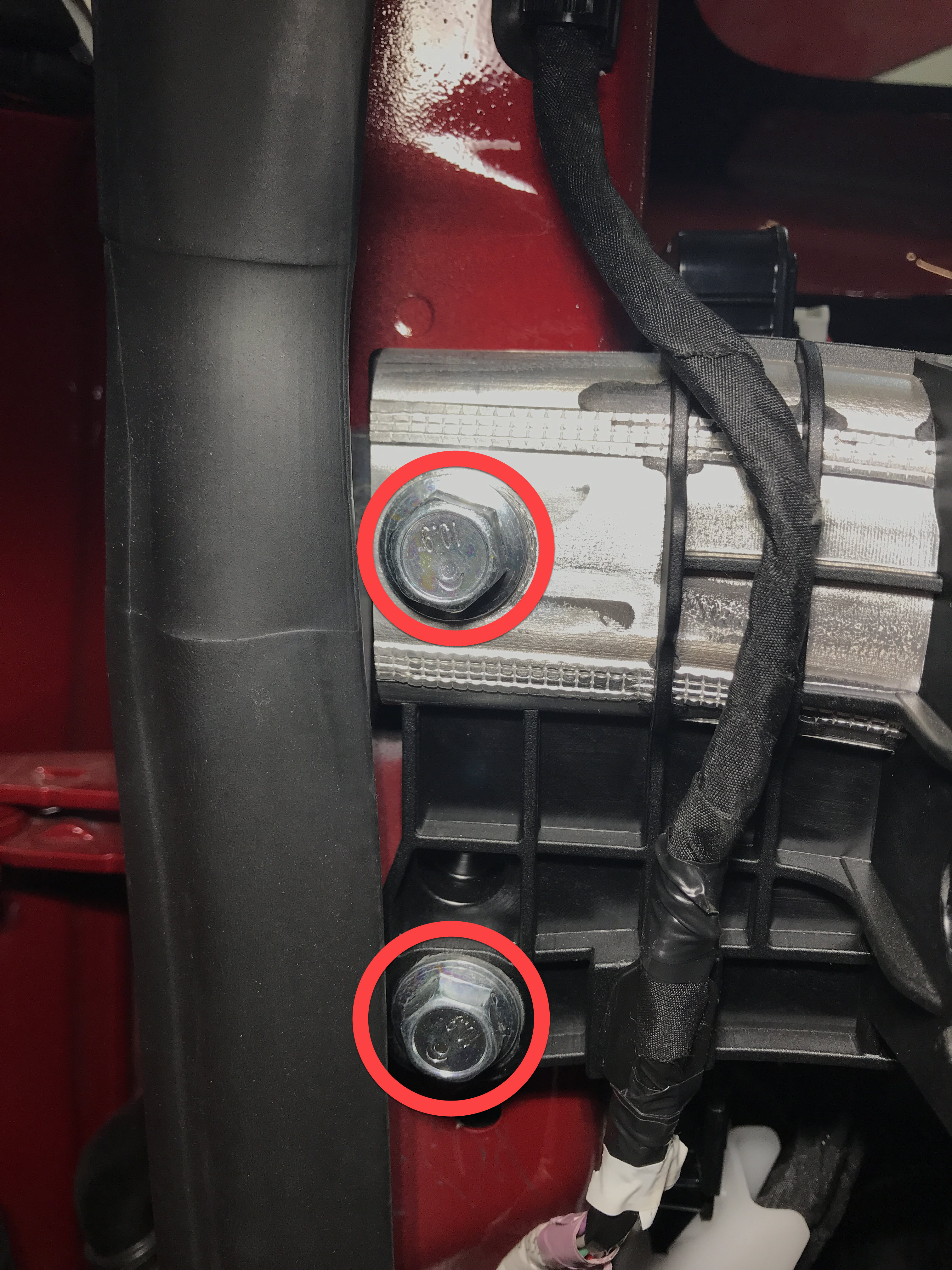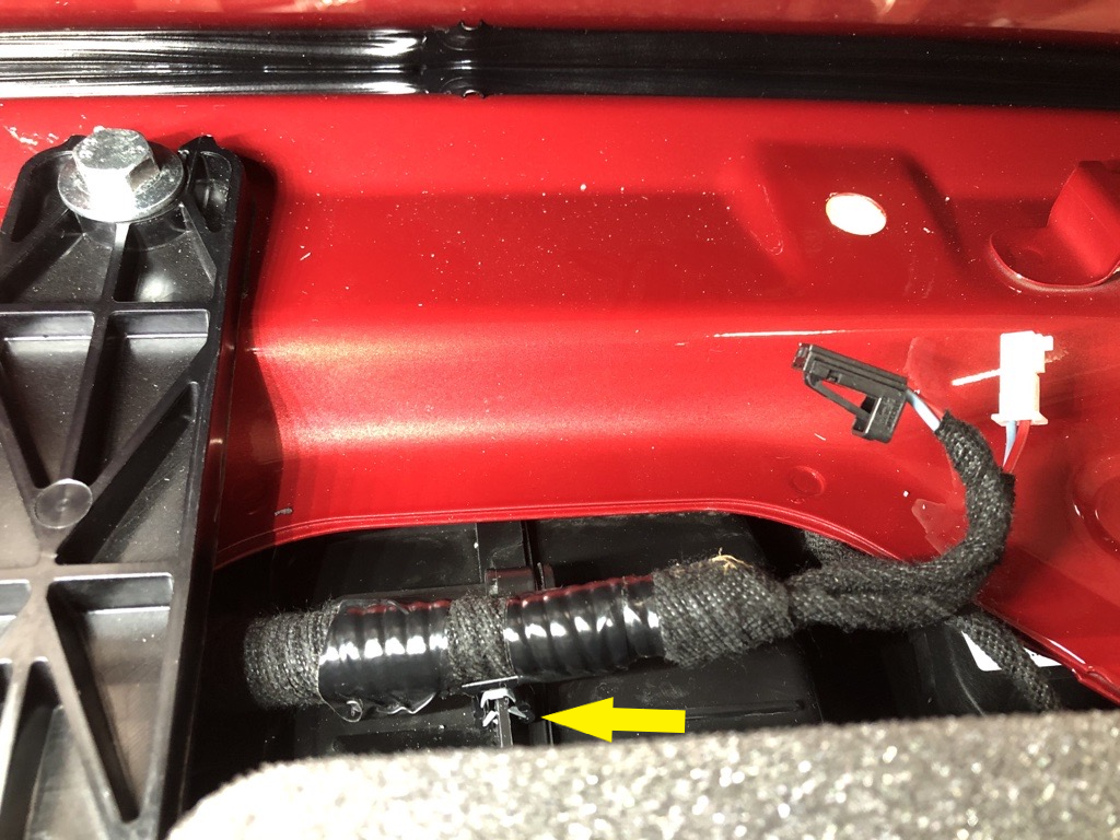 注1 个夹子,2 个导片;对齐 2 个前部锁片,然后将卡槽对齐线束支架,接着推动后端夹子,以便固定 B 柱下部