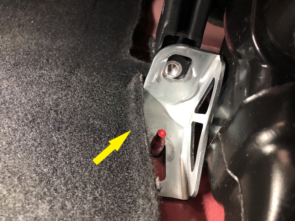 注1 个卡子,2 个导片;向上拉动 A 柱后下部,松开卡子,然后向后拉动以松开地毯前部锁片