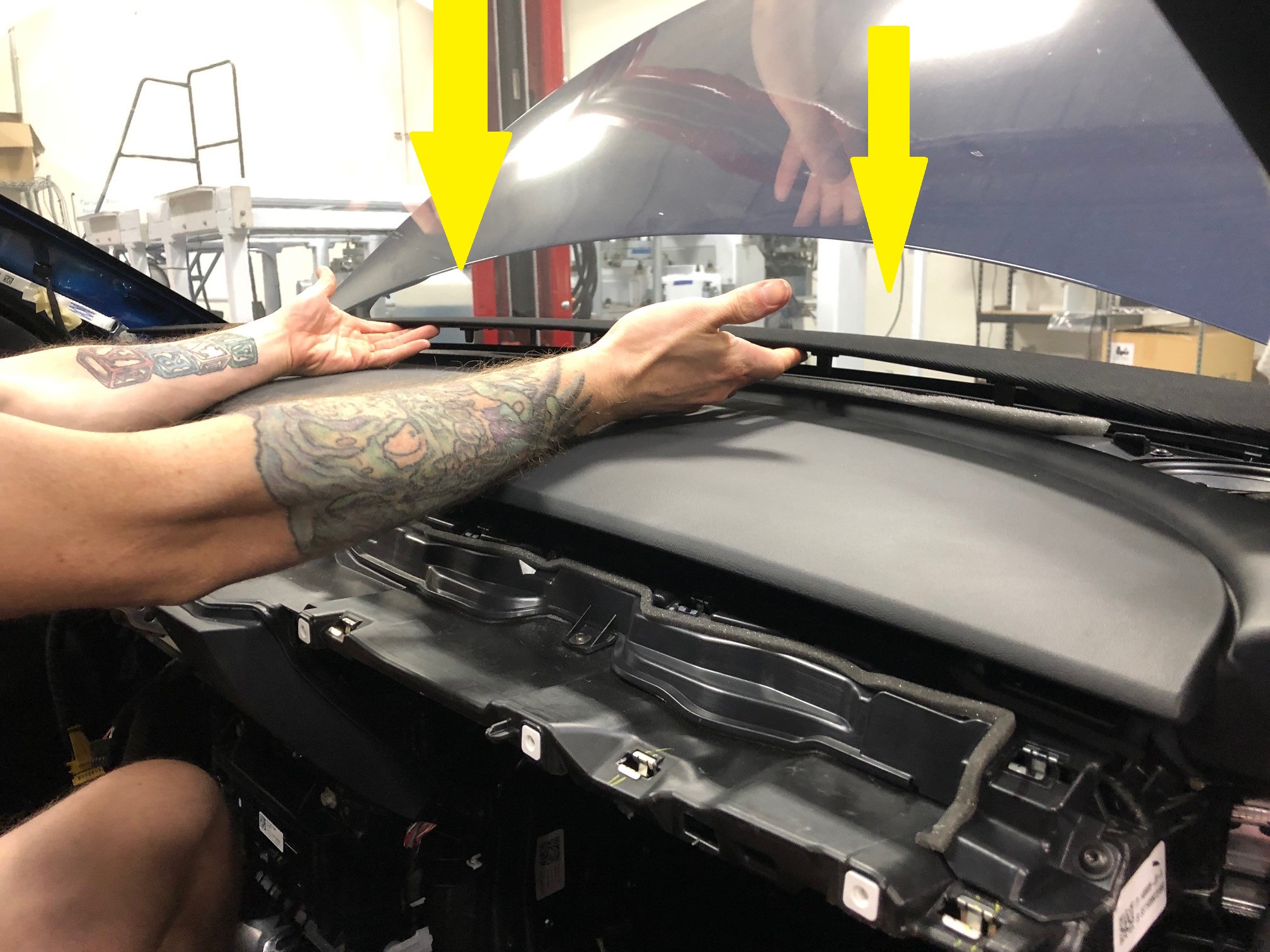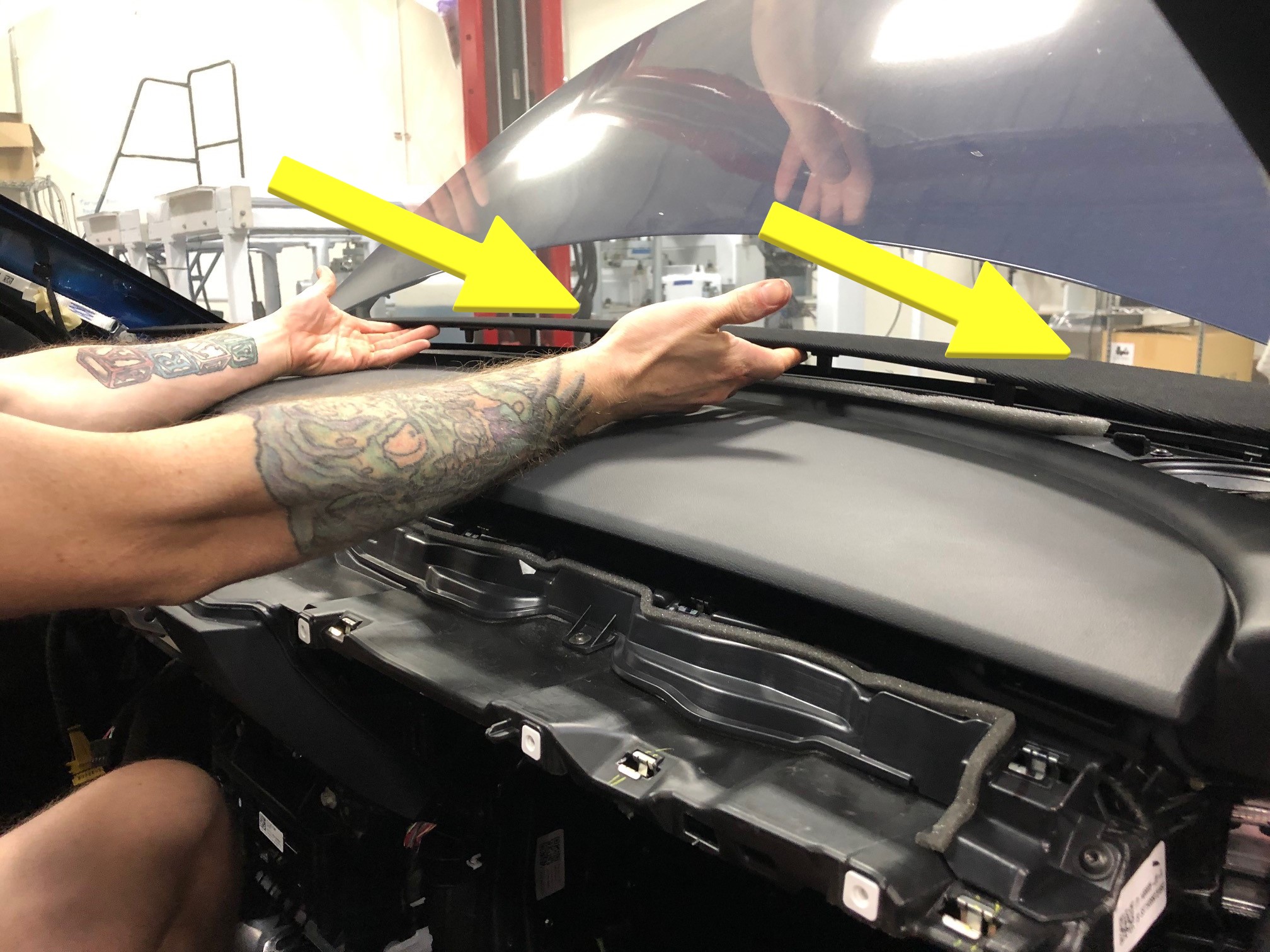 注16 个卡子;需要略微抬起顶垫,将仪表板眉饰滑入位