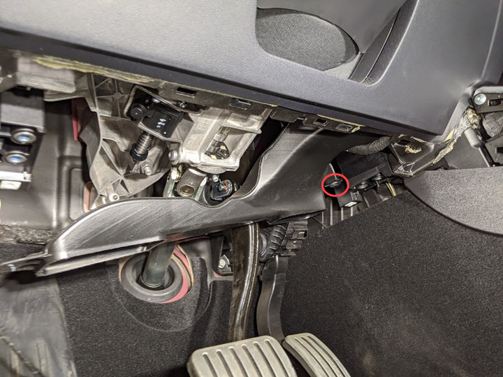 拆下用于固定左侧脚部空间盖板的螺钉和夹子