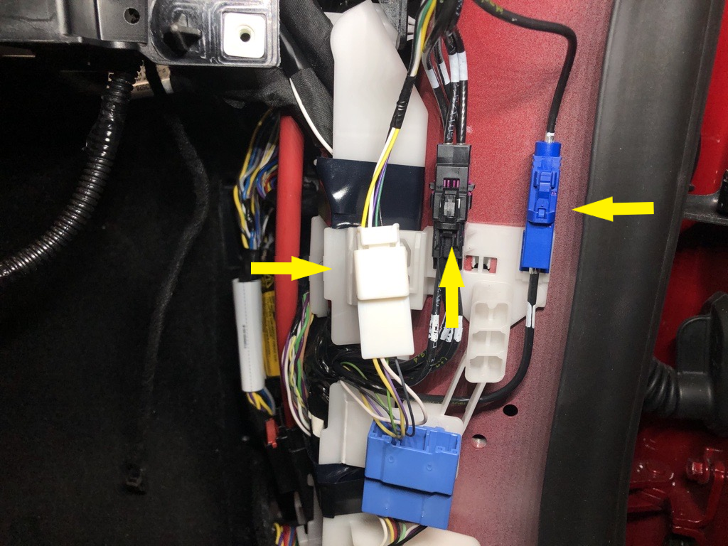 注3 个锁片,1 个以太网连接器,1 个地面照明灯连接器;对于亚太地区的车辆,还必须断开 ODII 连接器