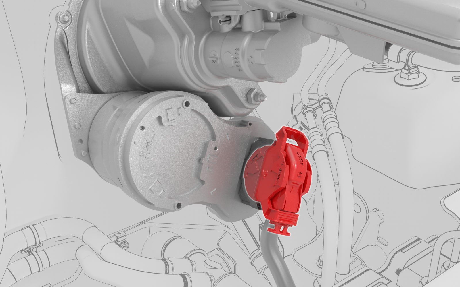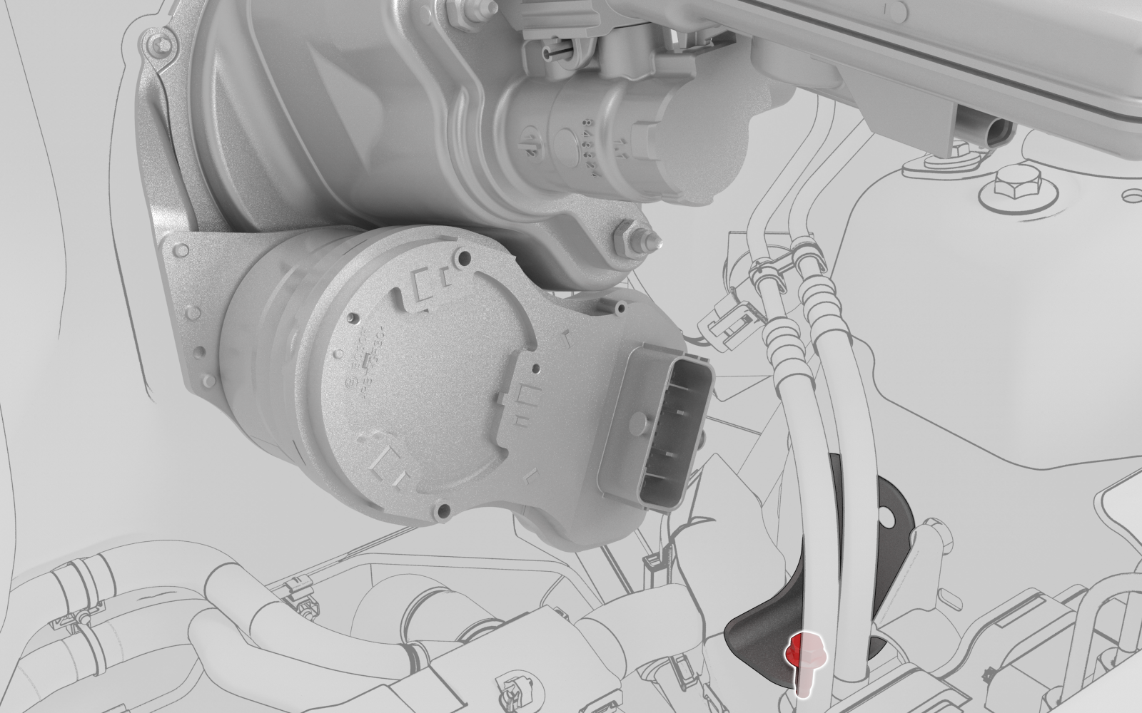 - 将电气线束连接器 (x2) 连接到机电制动助力器连接器。