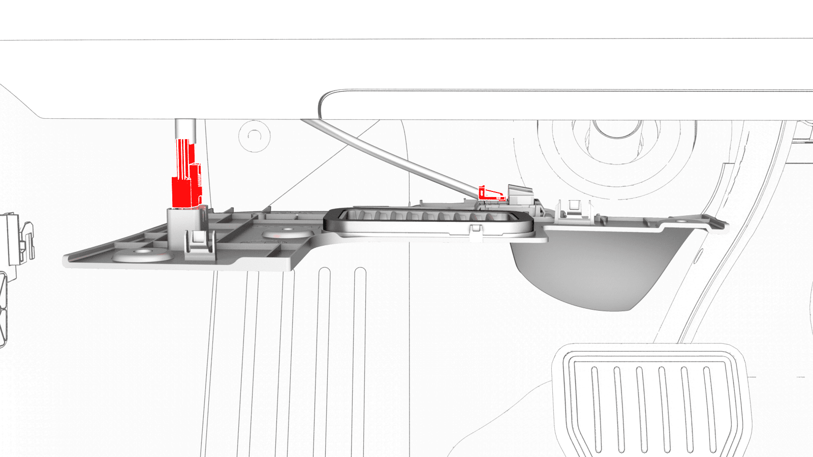 松开将驾驶位脚部空间罩固定到车辆的锁片,然后从车上拆下脚部空间罩。
