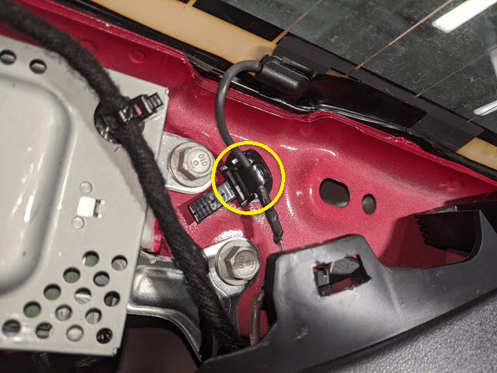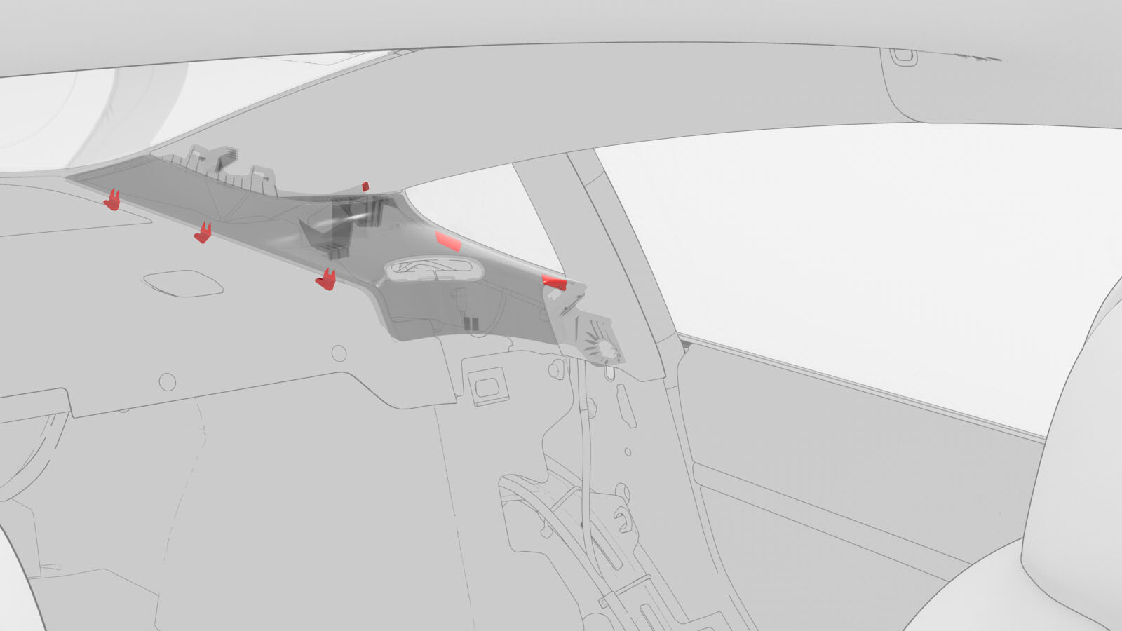- 拆卸左侧 C 柱上饰板。请参阅#GUID-CA7062E0-67B6-4F6E-8E04-41149EBDB913。
