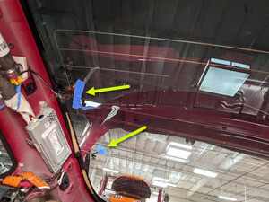 在 LH 和 RH 车顶柱外侧粘贴遮蔽胶带,以防车漆损坏。