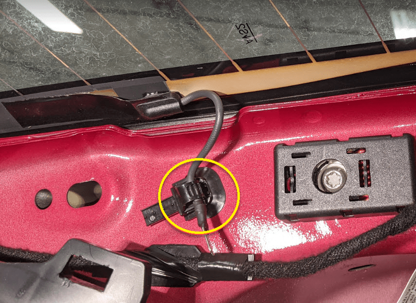 从 LH 侧 C 柱的天线放大器上断开背光灯电气线束连接器。
