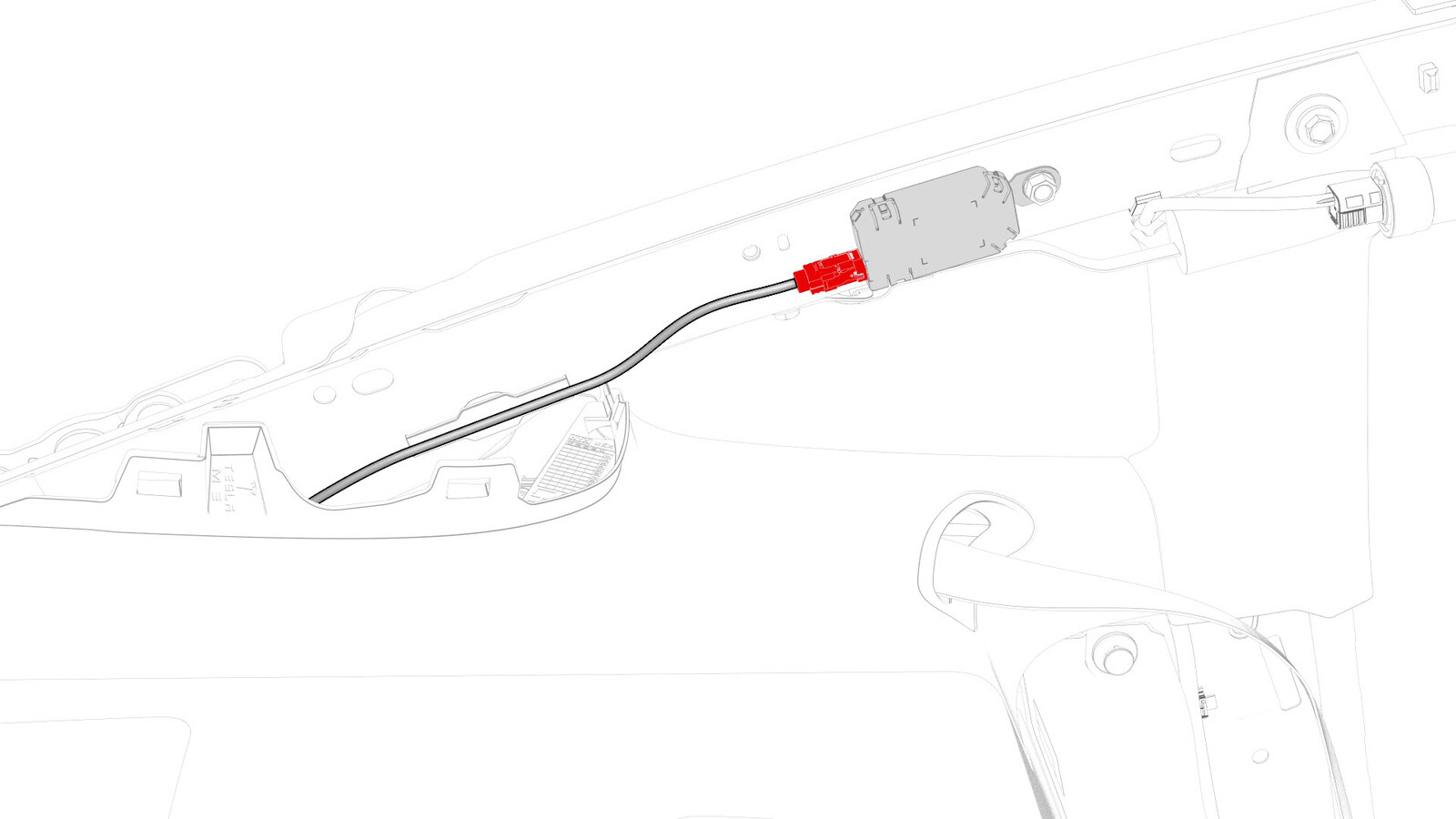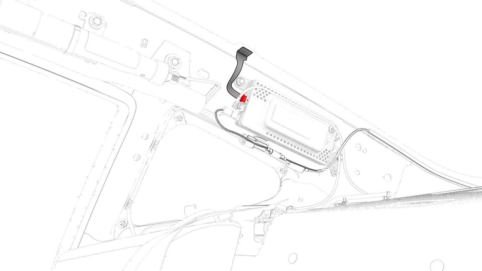 将背光灯电气线束连接器连接到右侧 C 柱的调谐器上。