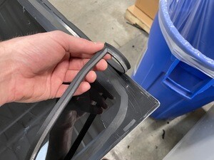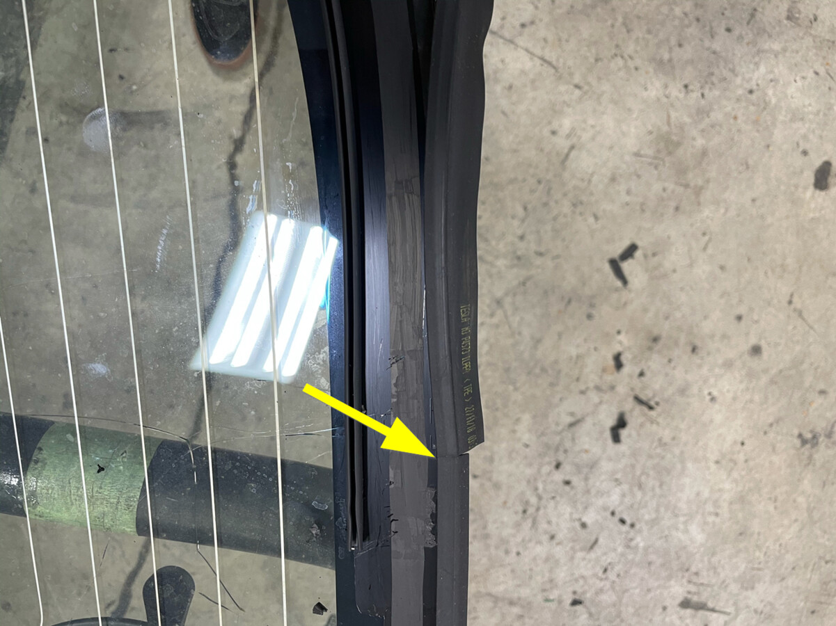切除后备箱翻盖密封条的重叠部分。