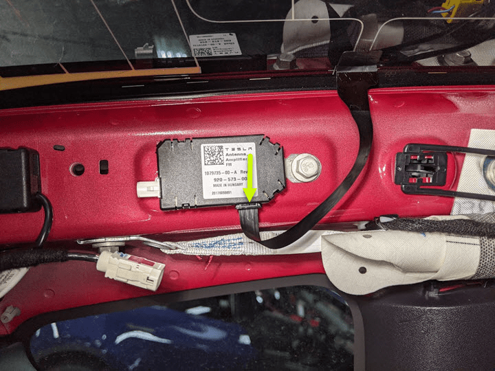 连接车辆 RH 侧的 12V 噪音过滤器天线连接器。