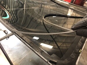 聚氨酯凝固期间,使用遮蔽胶带将背光灯玻璃固定到车身。