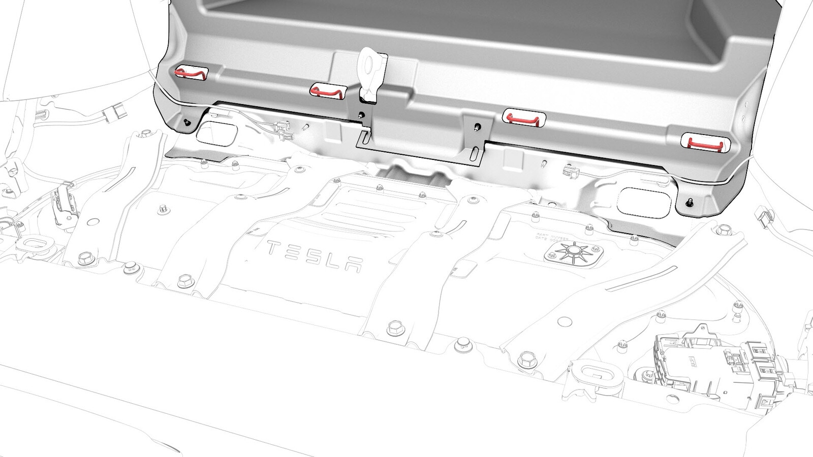 7. 松开将行李箱毡毯固定到车身螺柱的卡扣,然后从车上拆下行李箱毡毯。