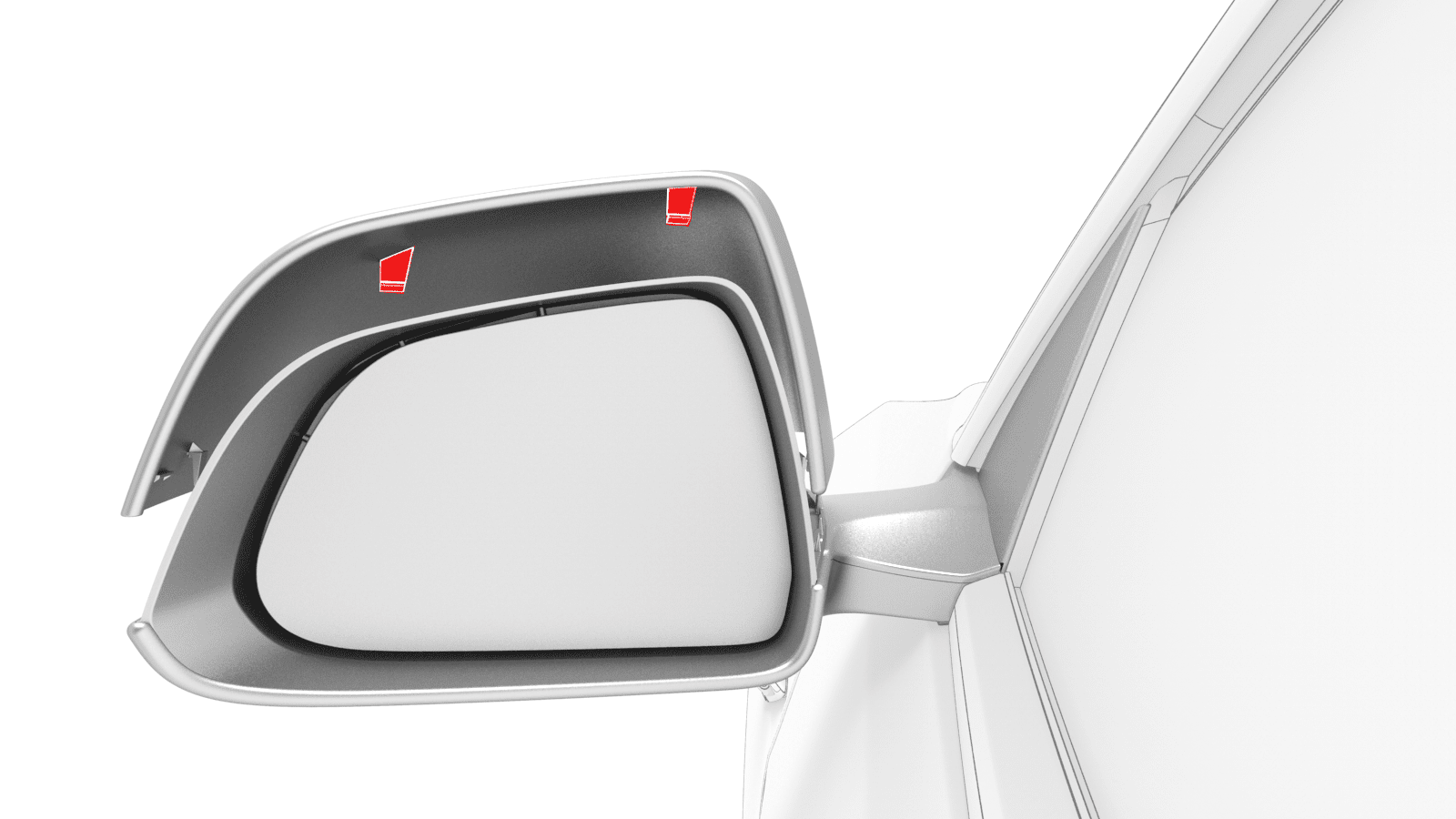 安装左侧后视镜盖,然后向下按压以紧固将盖子固定到后视镜的锁片。