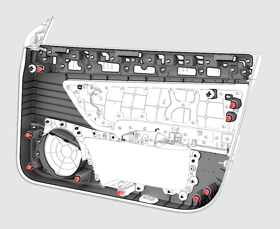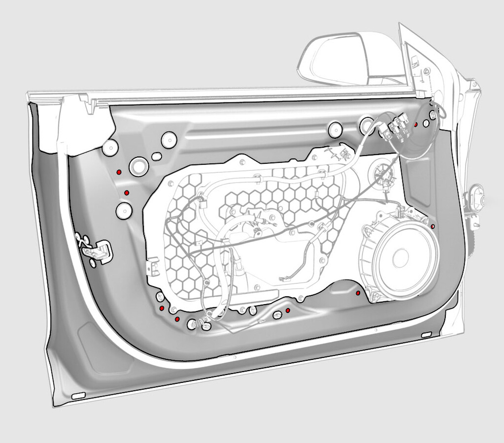 - 安装左前车门饰板。请参阅#GUID-A1113453-D65F-4779-B2C0-00D36D1C95B1。
