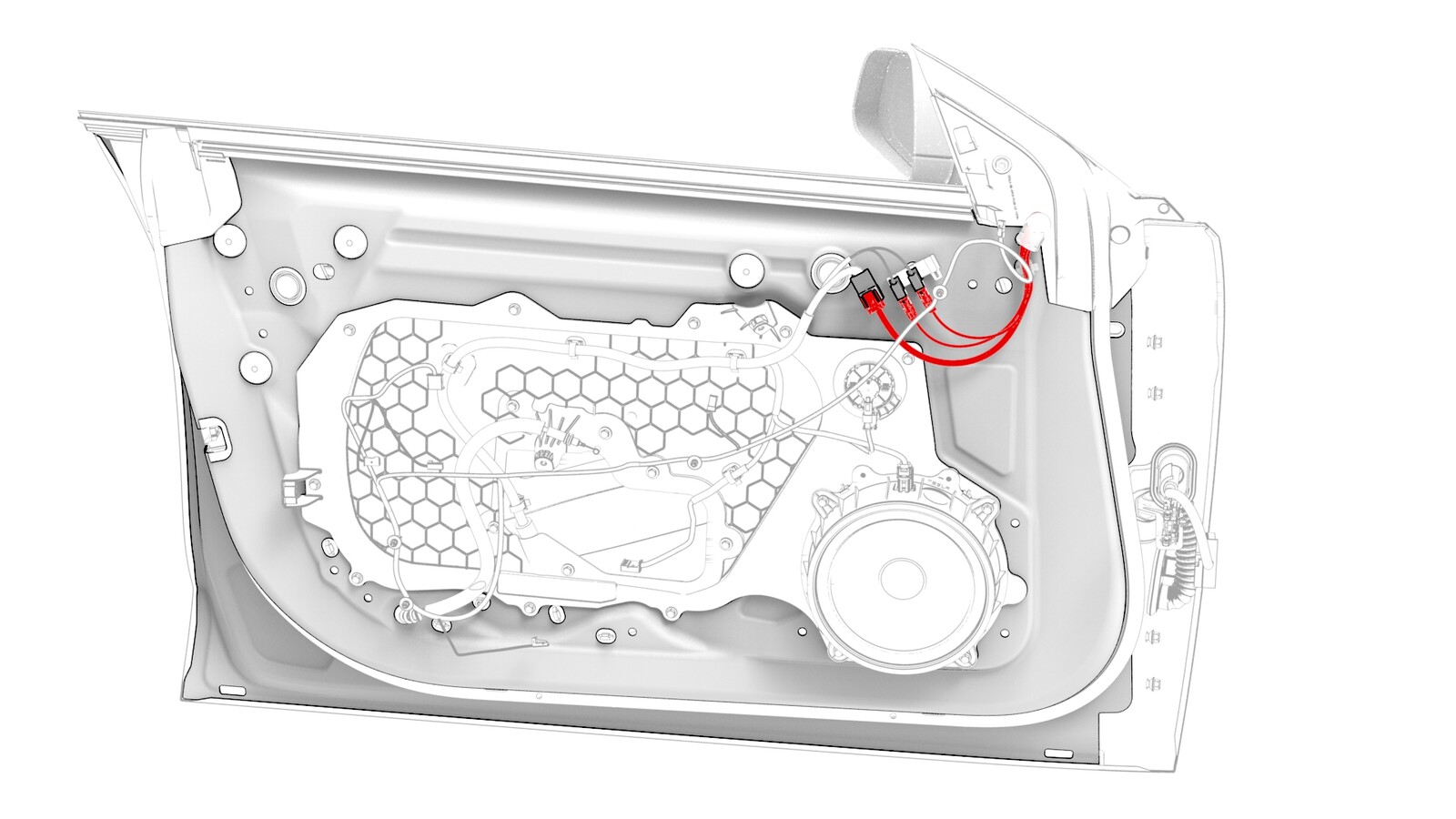 - 拆下左前车门高频扬声器。请参阅#GUID-078C741D-4A78-4C3D-8CC8-9E56E9E472FB。