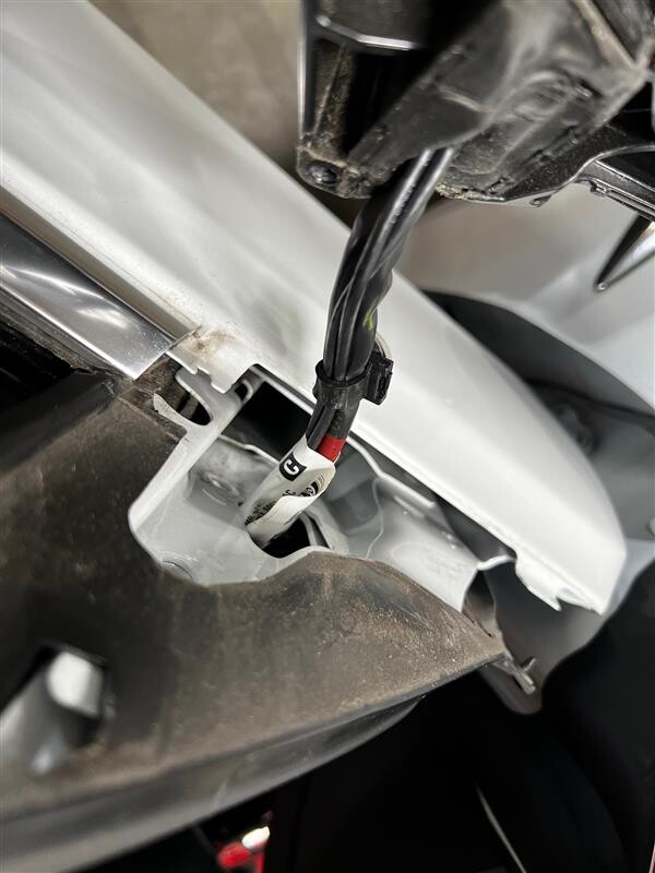 警告此时切勿将饰板从车门上拆下。注若为 2018 年 12 月 17 日之前生产的车辆,请检查线束夹和布线情况。