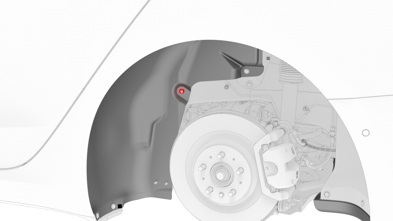 安装将左侧和右侧轮拱内衬固定到车身的中心夹。